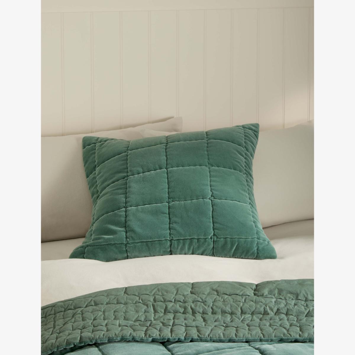 M&S Pure Cotton Velvet Quilted Pillow Sham Green