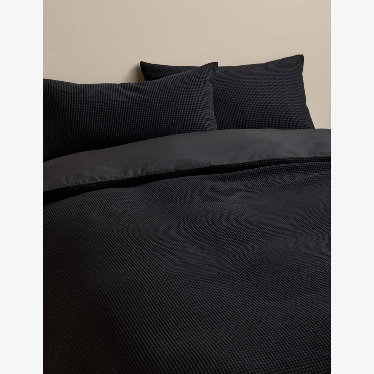 I love the M&S pure cotton waffle bedding set in black for its understated texture and versatility. Its classic black helps it fit seamlessly into both modern and contemporary interiors, especially those with a minimalist or monochrome palette. The waffle weave adds subtle visual interest and a cosy feel without overwhelming the space. For practical styling, I recommend pairing it with crisp white or grey bedding accents to create contrast, or layering with textured cushions and throws for a more inviting, layered look. Thanks to the pure cotton fabric, it’s also breathable and easy to care for, making it both stylish and functional.