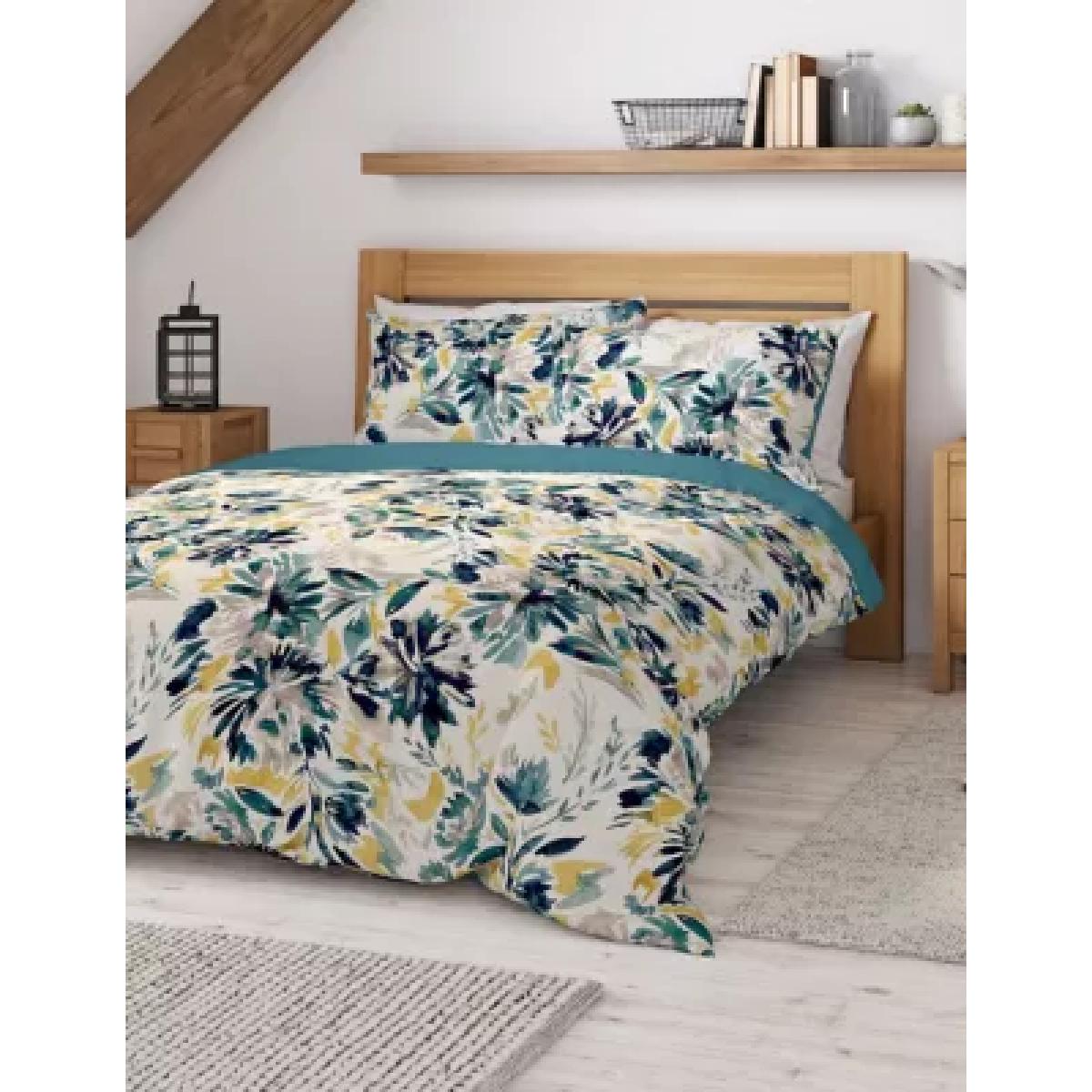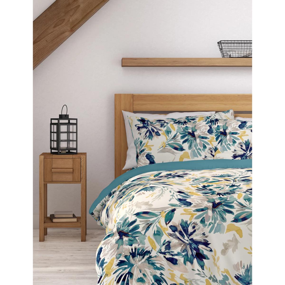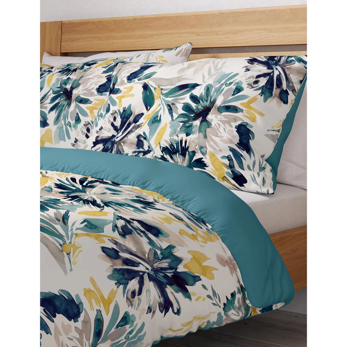 M&S Pure Cotton Watercolour Floral Bedding Set - 6FT - Teal Mix, Teal Mix