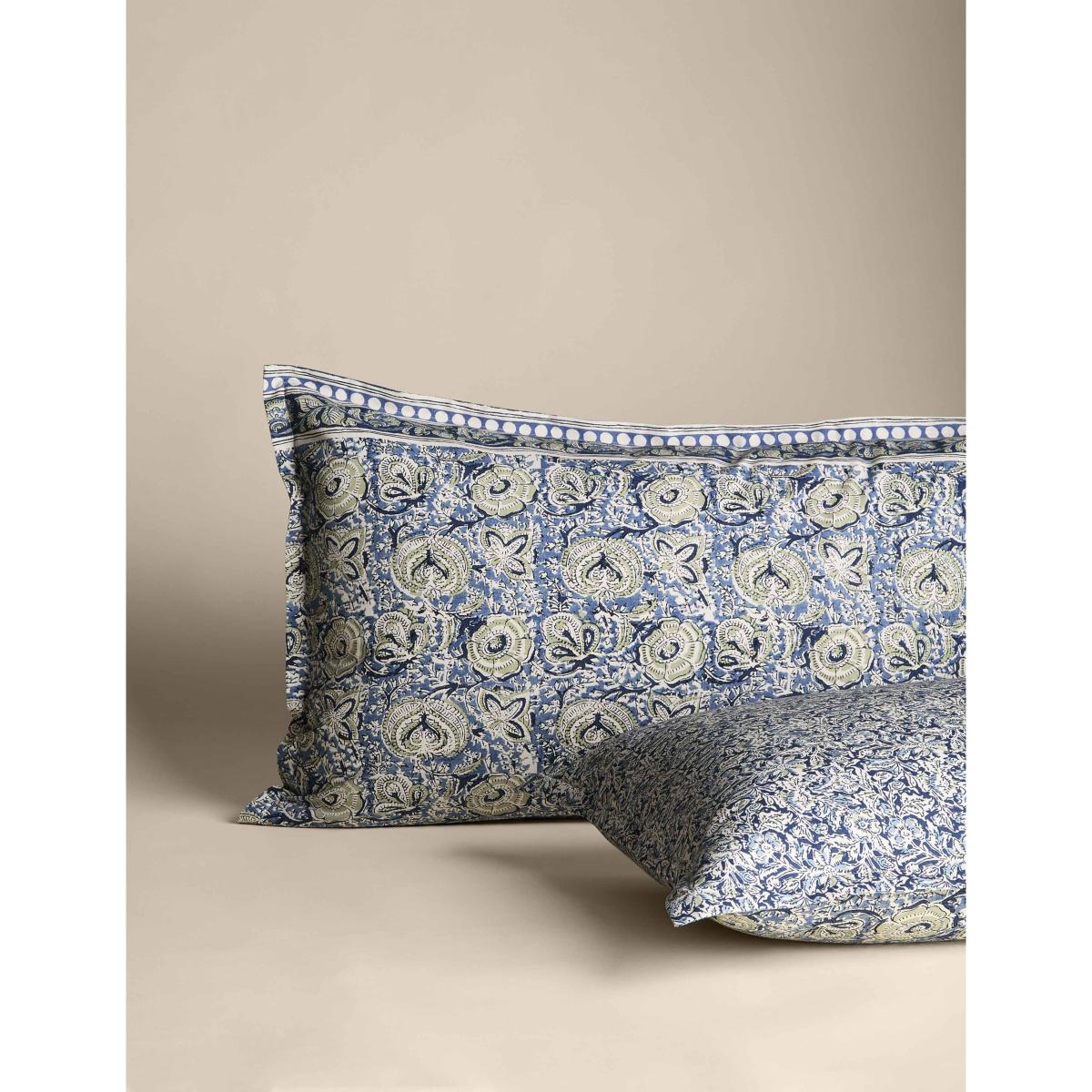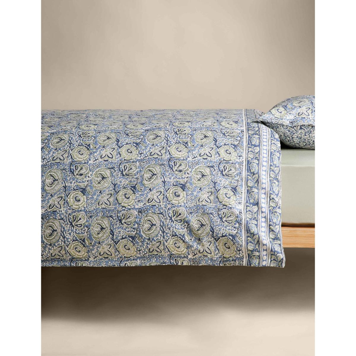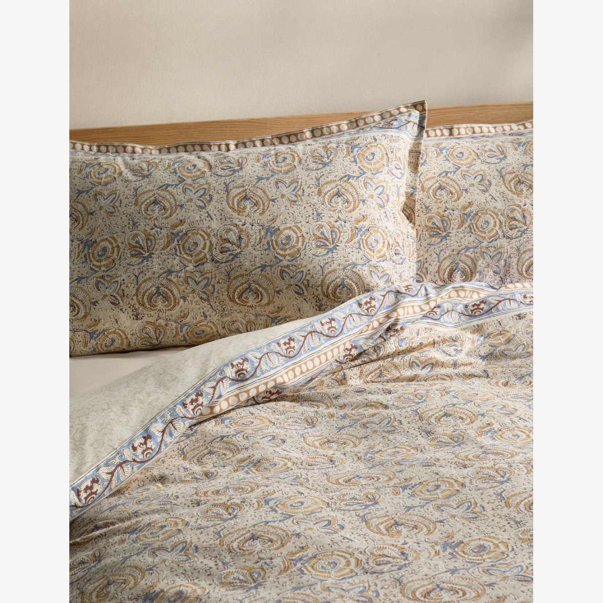 M&S Pure Cotton Woodblock Floral Bedding Set Natural Mix
