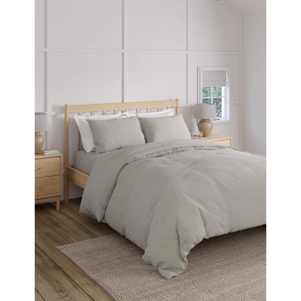 I love the M&S Pure Linen bedding set for its natural, breathable quality and understated style, making it a versatile choice for various interiors. It works particularly well in neutral, minimalist, or Scandi-inspired bedrooms, where its soft shades and relaxed texture can be the focal point or complement existing decor. Practical styling tips include pairing it with crisp white or pastel bedsheets, as shown here, or layering with textured throws for added warmth and visual depth. Its natural linen fabric also ages beautifully over time, gaining character and a relaxed, lived-in appeal-perfect for creating welcoming, restful spaces.