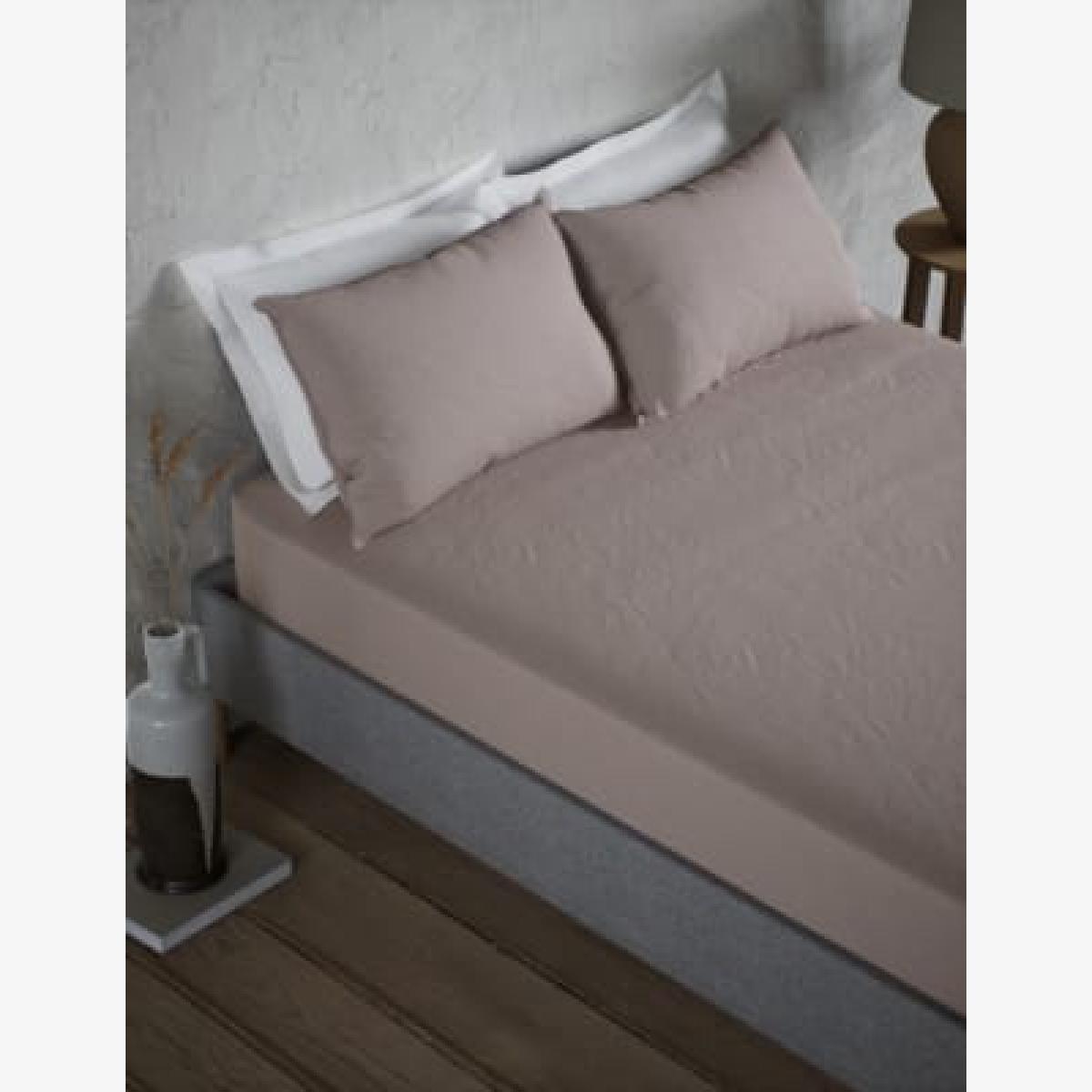 I love this bed sheet set for its crisp, natural look and versatile colour options. The soft pink, sandstone, and sage shades lend themselves well to a calming, relaxed bedroom environment, perfect for creating a restful atmosphere. It works particularly well in Scandi or contemporary interiors due to its understated elegance and neutral textures, but the array of colours also means you can easily incorporate it into more eclectic or boho spaces. Practical styling tips include layering with textured cushions or throws in complementary colours to add visual interest without overwhelming the subtle tones. Its deep fitted design ensures a neat, tidy look around the mattress, making it a practical choice for everyday use in both relaxed and more refined bedroom settings.