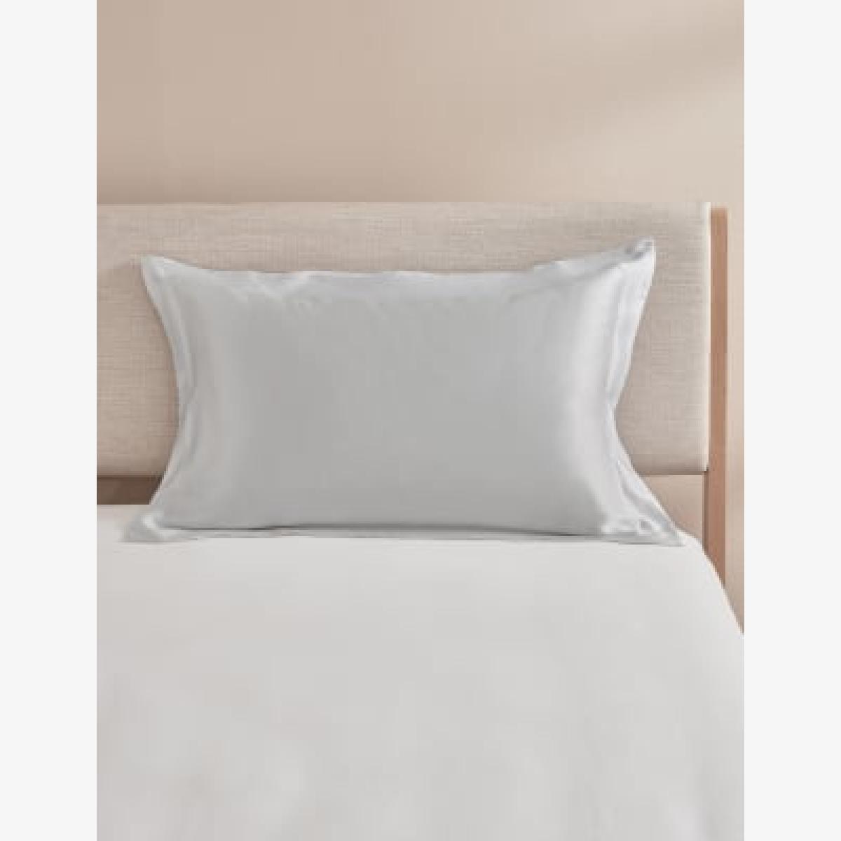 M&S Pure Silk Oxford Pillowcase - Light Grey, Light Grey,Navy