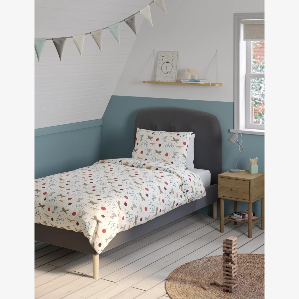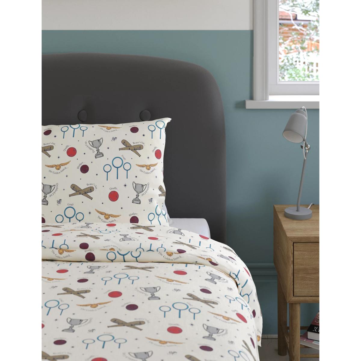 Add a little magic to bedtime with this cotton-blend Harry Potter™ bedding set. It's made with StayNew™ technology so it looks and feels like new, wash after wash. A quick-drying innovation helps to keep the fabric cool and comfortable all night. The zip fastening makes changing the bed simple, while the Quidditch design is printed on both sides for a reversible finish.