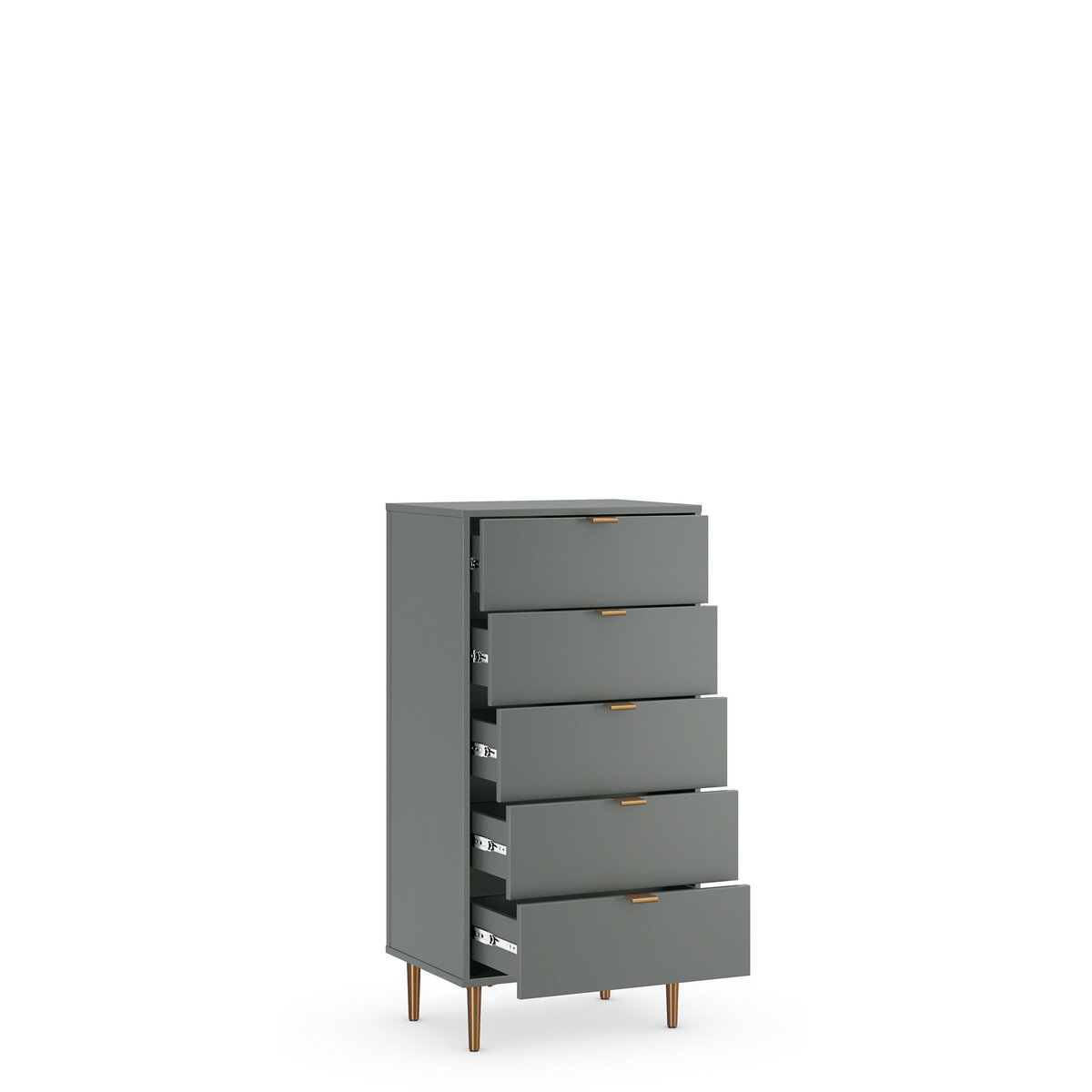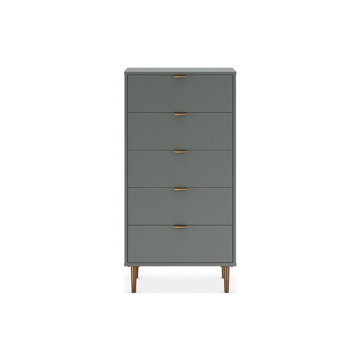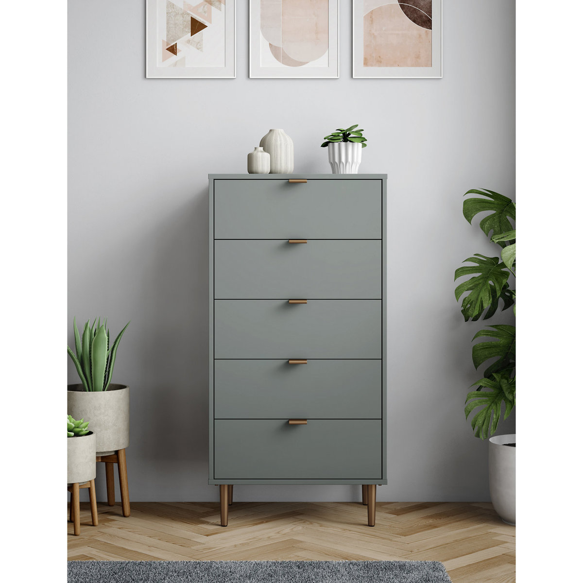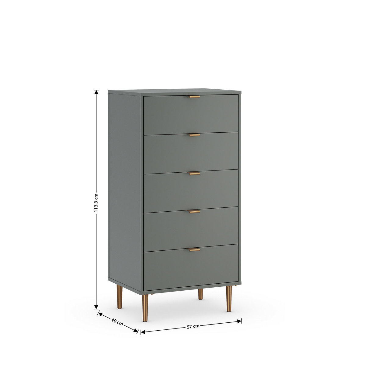 This five-drawer chest from our Quinn range offers ample storage while bringing a clean, modern feel to your decor. The matte lacquer finish is complemented by sleek legs and tab handles in galvanised steel. Ideal for a narrower space, this versatile unit is perfect for use in any room in your home. Matching items are available in the Quinn range. We're so confident our furniture is built to last, our industry-leading guarantee covers any manufacturing failure on all furniture. That's our promise, and why our furniture comes with a 10-year guarantee that you can trust. Excludes: outdoor furniture and any issues that are a result of normal wear and tear, improper care or accidental damage.