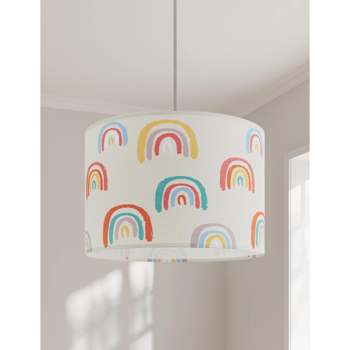 Bring extra cheer to kids' bedrooms with this brightly coloured, painted-effect rainbow shade. A drum shade suitable for use with a ceiling light.