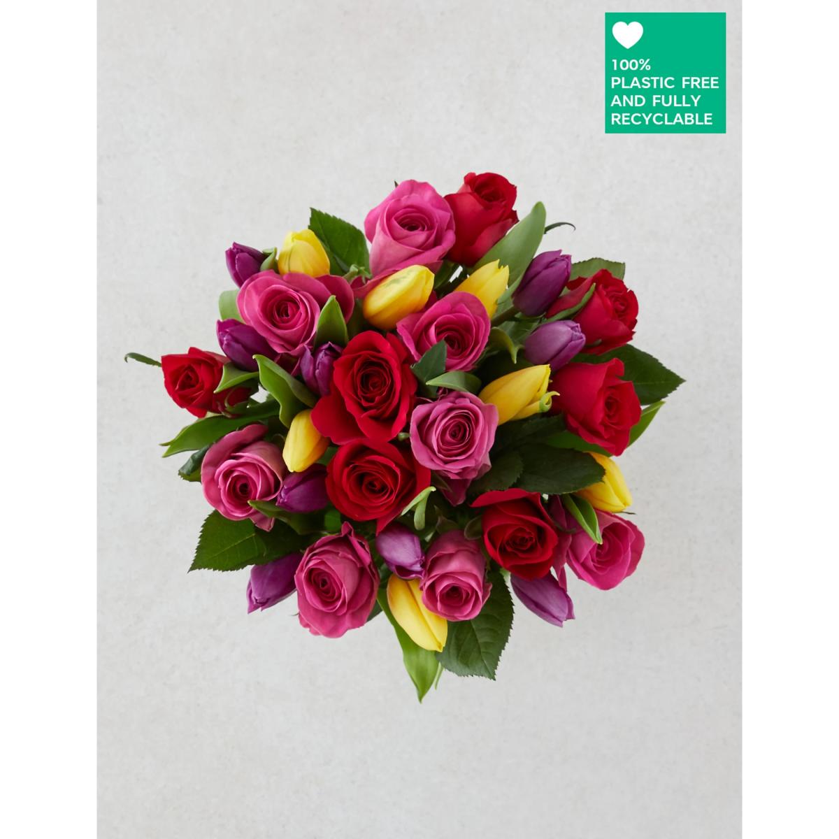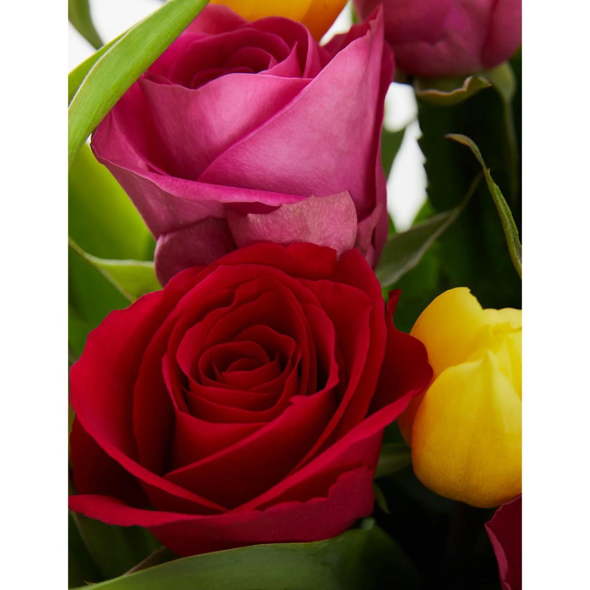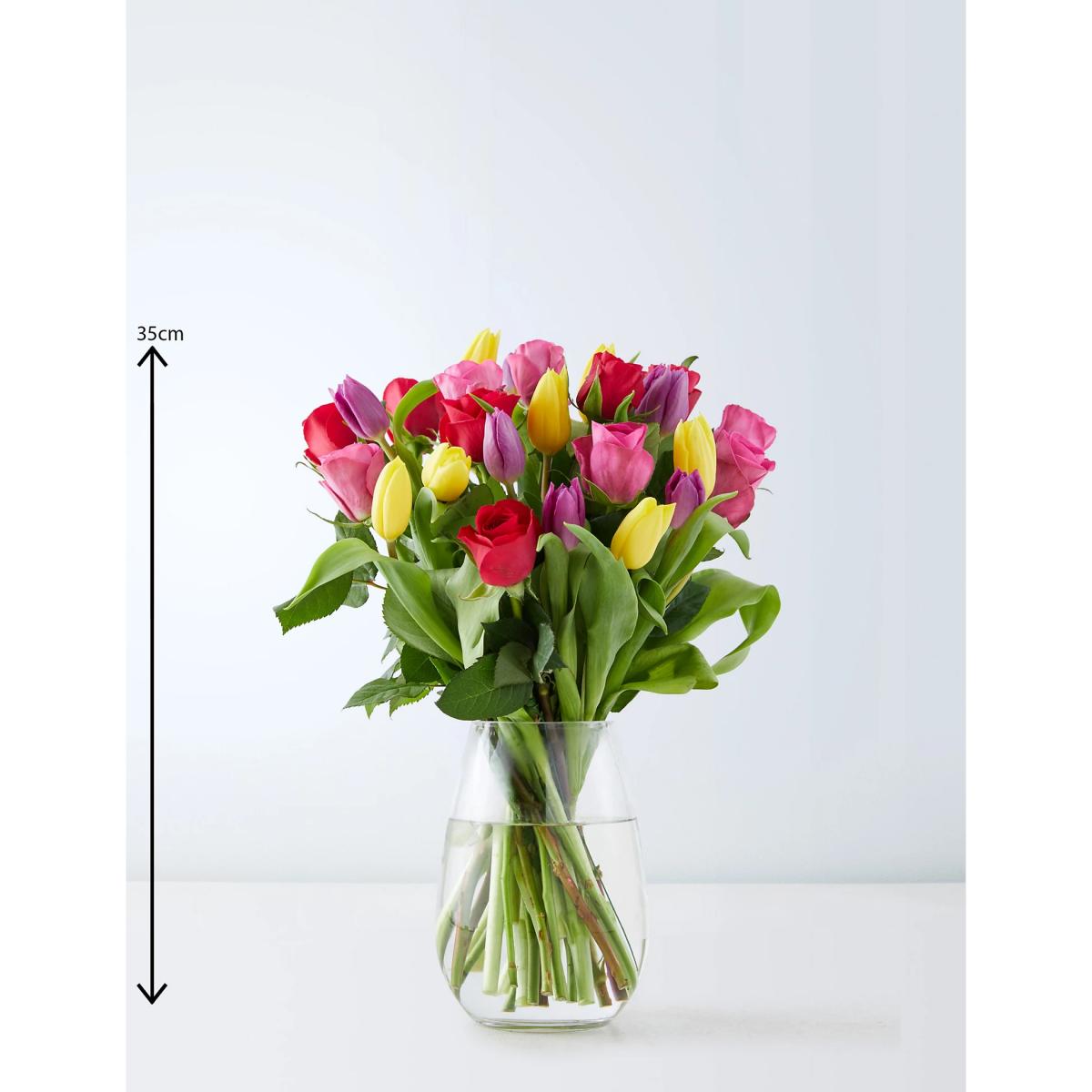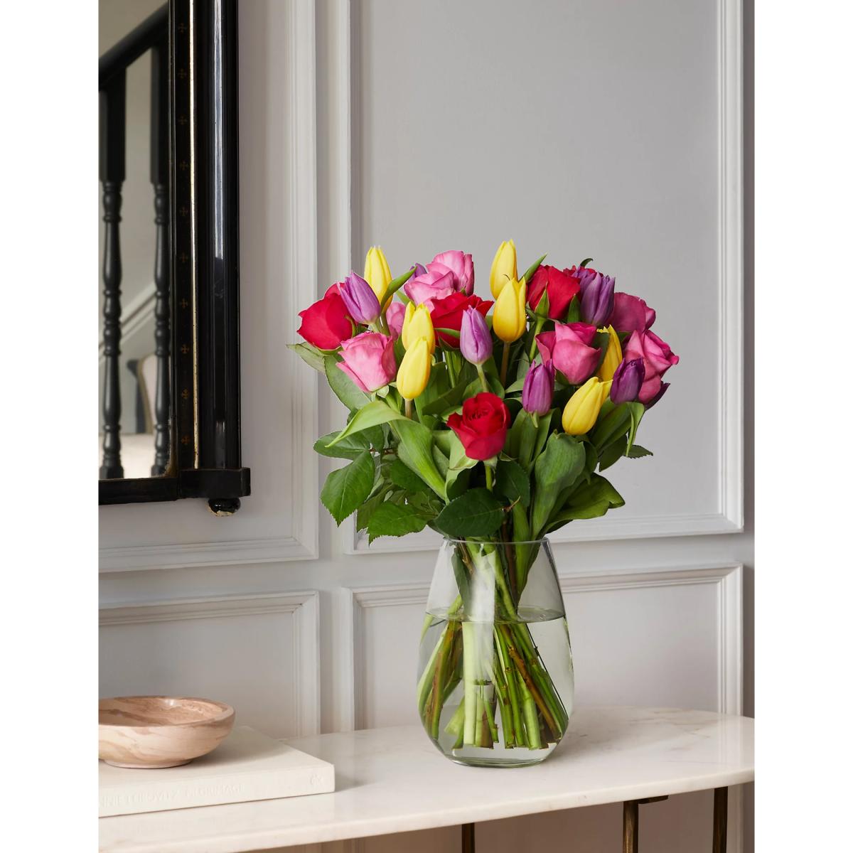 I love this bouquet for its vibrant yet refined colour palette, making it a versatile choice that can lift both modern and traditional interiors. The Rainbow Rose & Tulips arrangement works particularly well in light, neutral schemes, adding a splash of colour without overwhelming the space. It’s perfect for side tables, mantelpieces, or even as a centrepiece on a dining table for sustained impact. For styling tips, consider placing it in a clear glass vase to highlight the stems or pairing it with minimalist decor for a contemporary look. Since it’s artificial, it’s low maintenance and ideal for spaces with limited natural light or high traffic areas, offering lasting beauty without the fuss of fresh flowers.