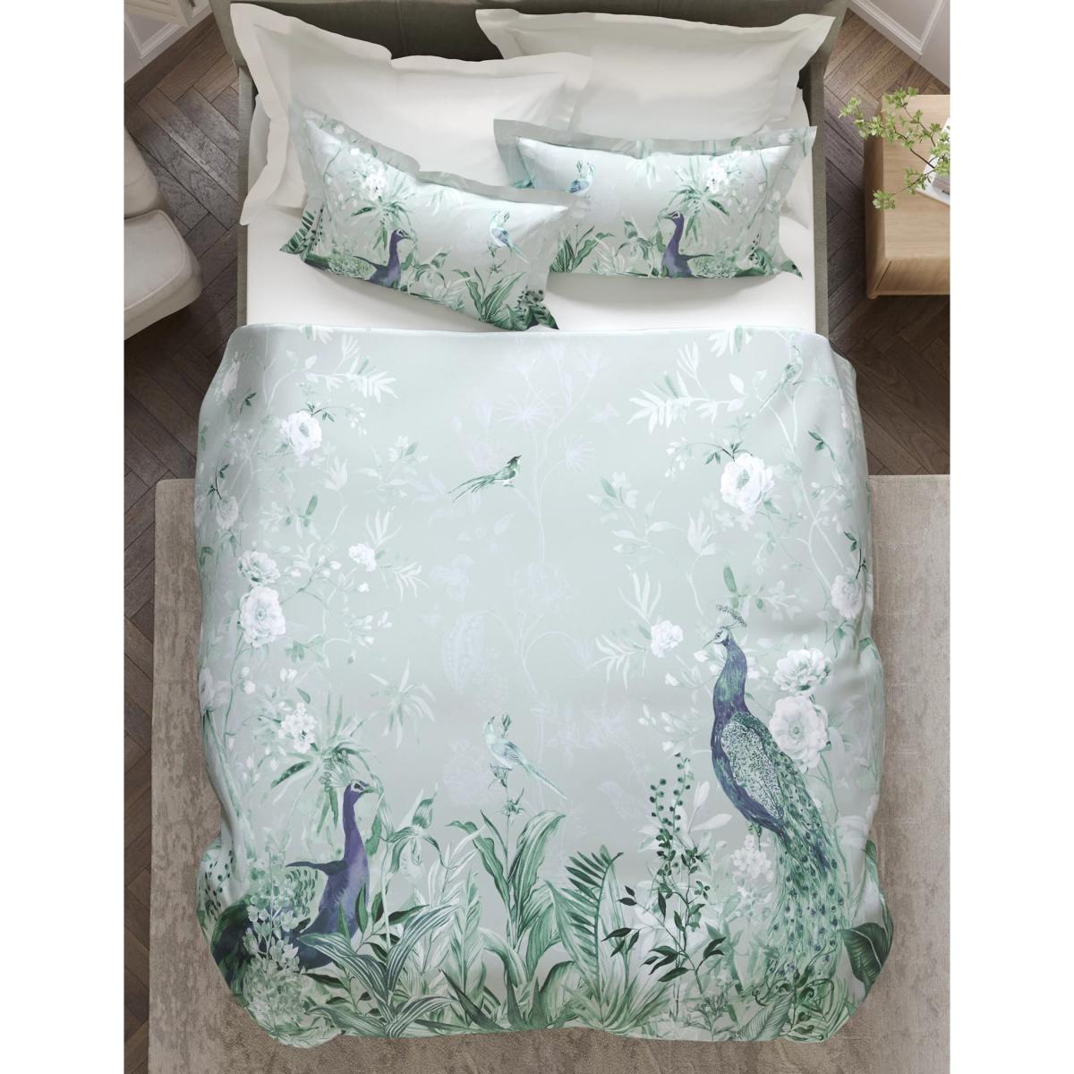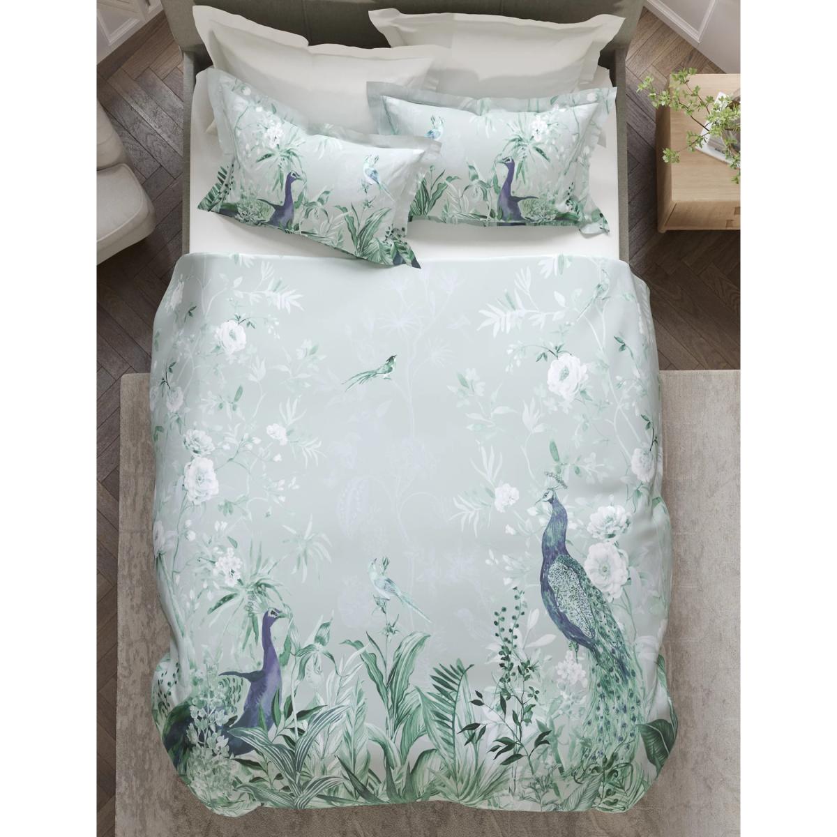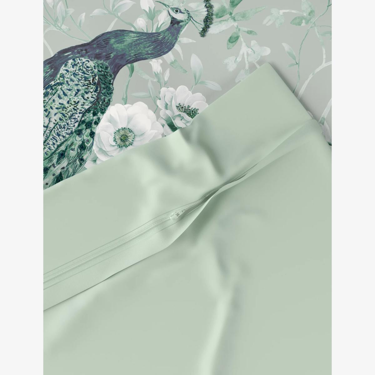 The Raine Peacock embroidered bedding set is crafted from 300-thread count pure cotton sateen for a gentle feel and a luxurious sheen. Its bold design shows peacocks resting among sprays of flowers and foliage, and is complemented by a plain back in a coordinating hue. The cover fastens with an easy zip.