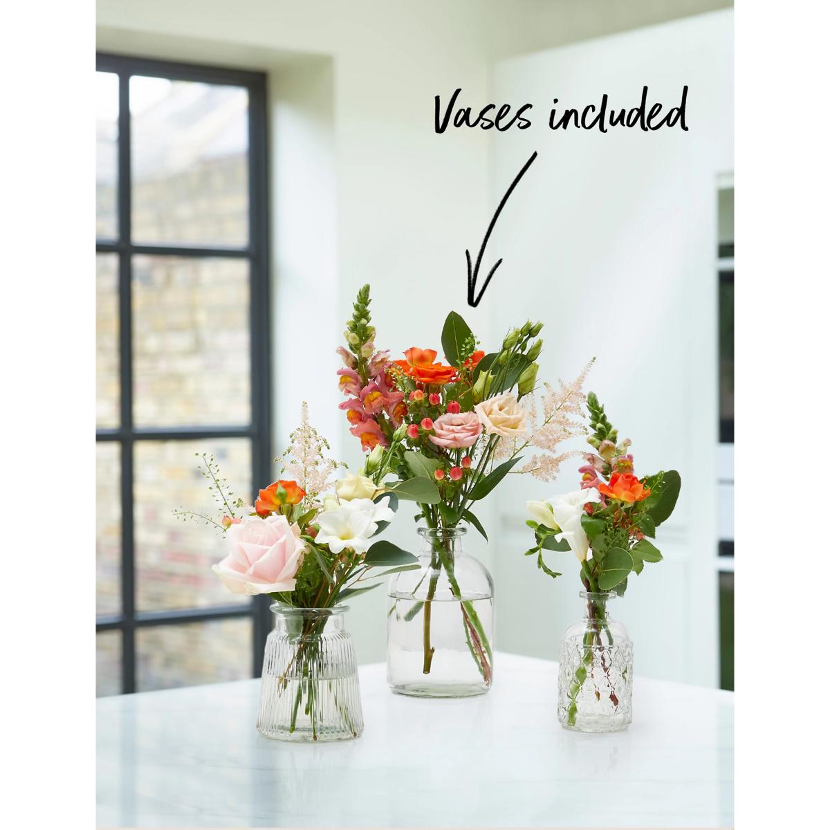 M&S Ready To Arrange Flowers with Clear Bud Vase Trio (Delivery from 31st May 2022)