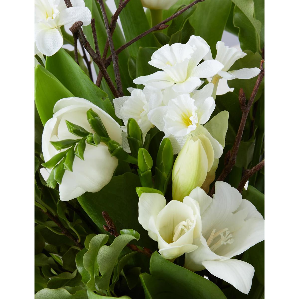 I really like this winter white posy for its versatile, understated elegance-it’s perfect for freshening up both contemporary and traditional interiors. The neutral tones and natural-looking arrangement make it a great choice for creating a sophisticated centrepiece or adding subtle seasonal touches without overwhelming the space. It works particularly well in minimalist or monochrome schemes, but also complements richer textures and colours. For styling tips, consider placing it in a clear glass vase like shown or in a contrasting matte finish to add visual interest. It’s ideal for coffee tables, sideboards, or even as a desk pick-me-up, providing a sense of freshness and seasonal charm without the upkeep of real blooms.