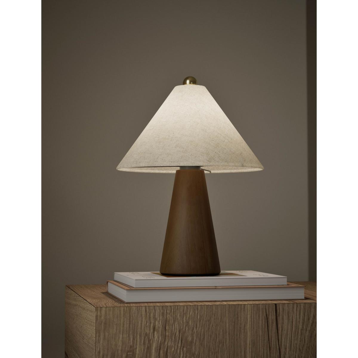 With its clean, contemporary silhouette, this table lamp is a stylish addition to your room. Its tapered base is wood effect for a natural look and complemented by a simple shade to diffuse the light. This piece is rechargeable and touch-activated, so you can place it wherever you like without worrying about loose cables.