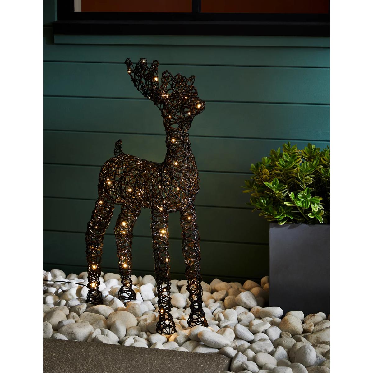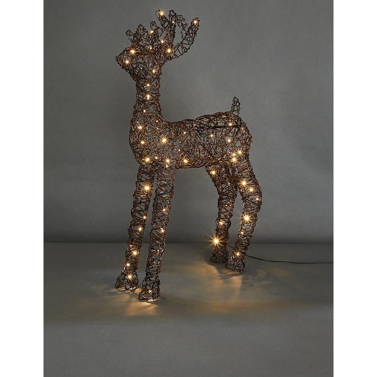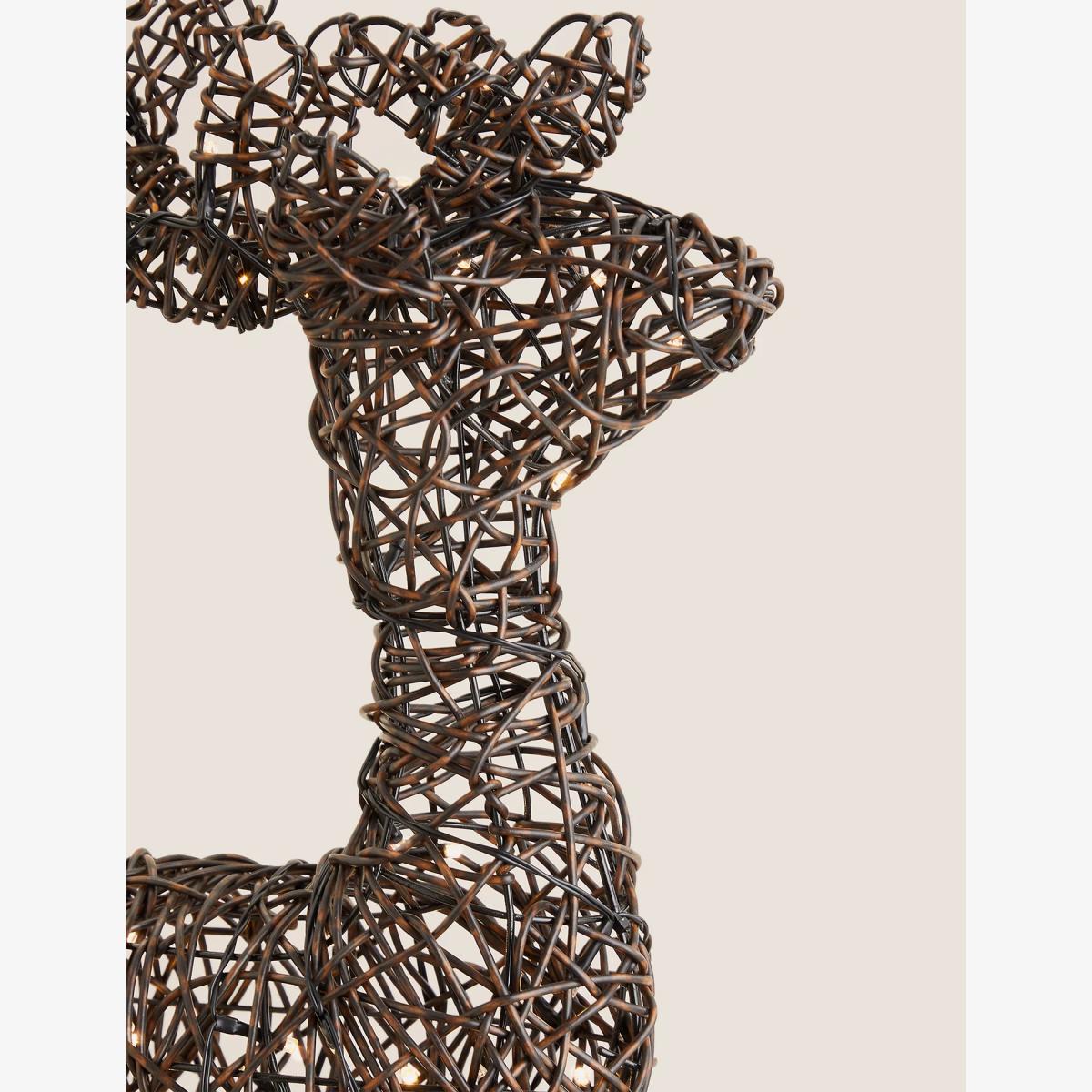 Bring the magic of Christmas to your home with this beautiful reindeer light. It's woven in basketwork style with the string lights sparkling throughout. Mains operated, and suitable for outdoor use.