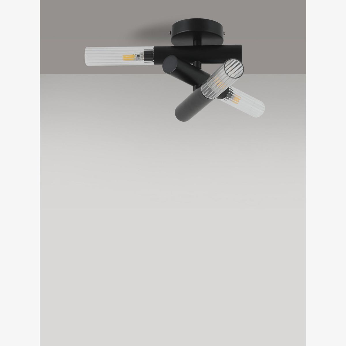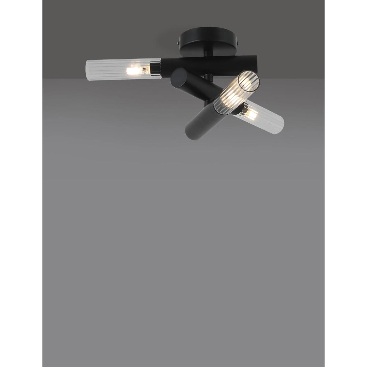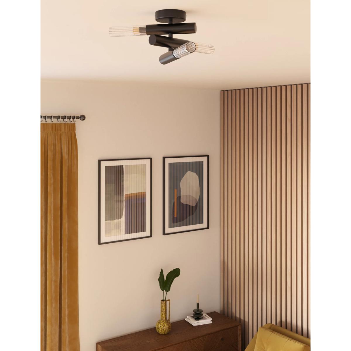 Add some contemporary flair to your space with this striking ceiling light, crafted from a mix of glass and metal. It features three distinctive ribbed glass shades, all pointing in different directions for a quirky look. This light has a flush design, making it perfect for maximising space in any room.