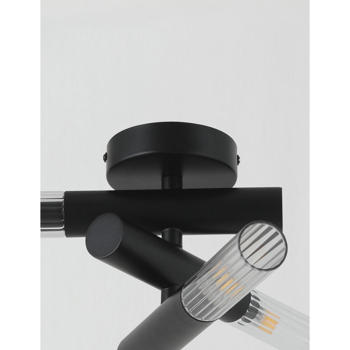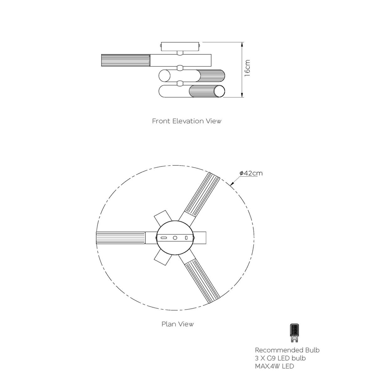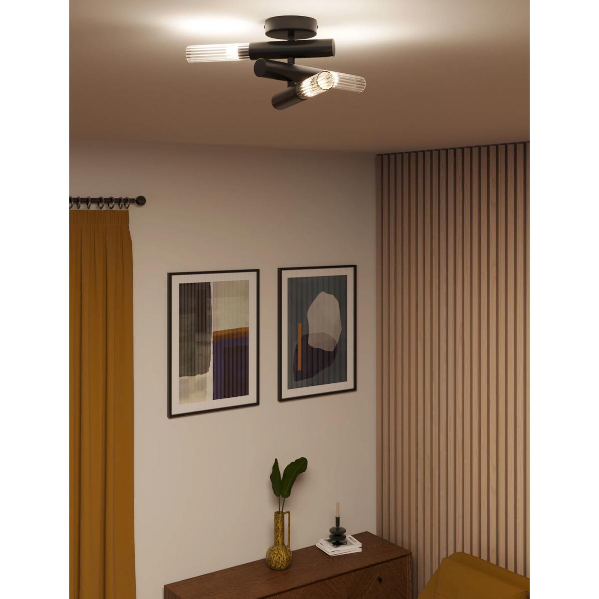 Add some contemporary flair to your space with this striking ceiling light, crafted from a mix of glass and metal. It features three distinctive ribbed glass shades, all pointing in different directions for a quirky look. This light has a flush design, making it perfect for maximising space in any room.