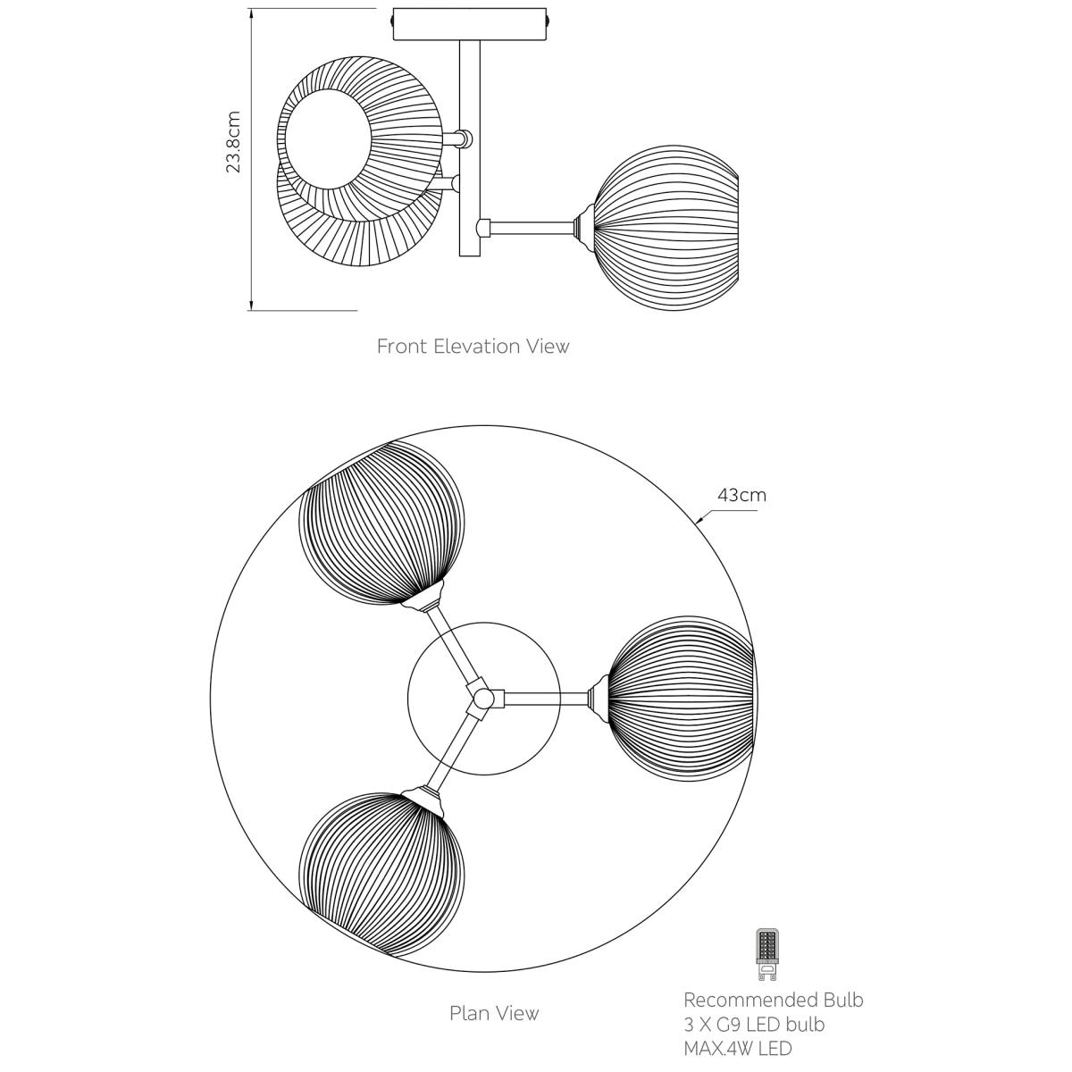 This elegant Globe flush ceiling light will fit in with both classic and modern interiors. The metal frame has a polished brass finish and is complemented by three matt ribbed globes. Matching items are available in this collection.
