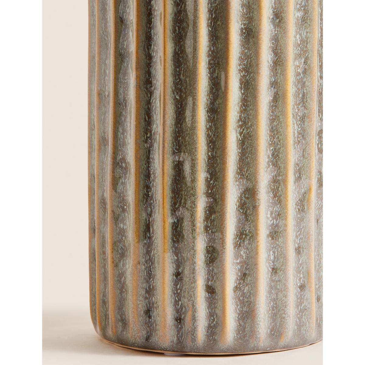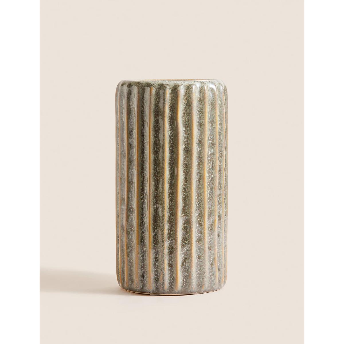 M&S Ribbed Reactive Glaze Ceramic Vase - Grey, Grey