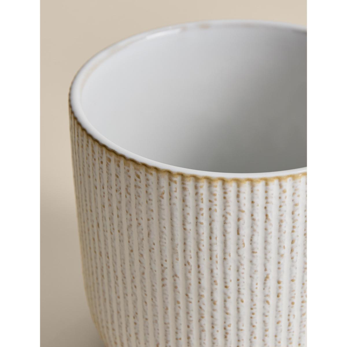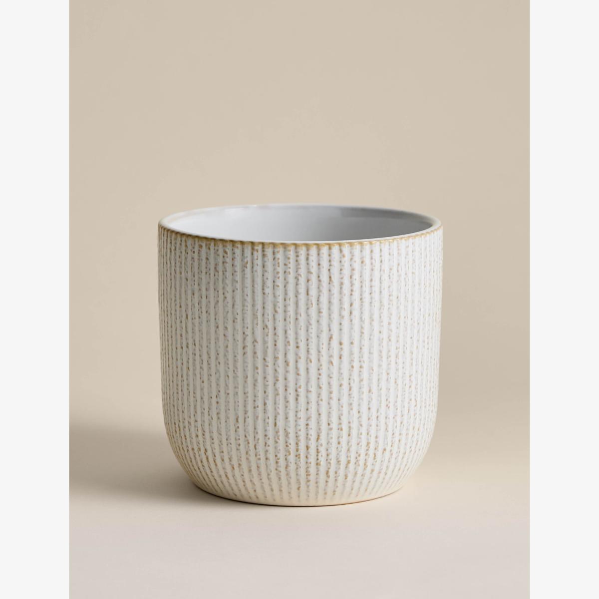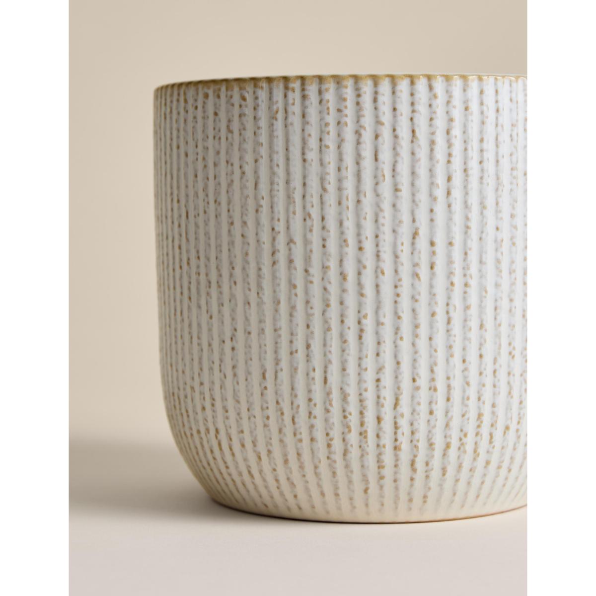 This ceramic planter offers a stylish way to display your favourite house plant. It has a ridged design on the exterior for added texture, which is highlighted by the speckled finish. Complete with a glazed coating for extra durability.
