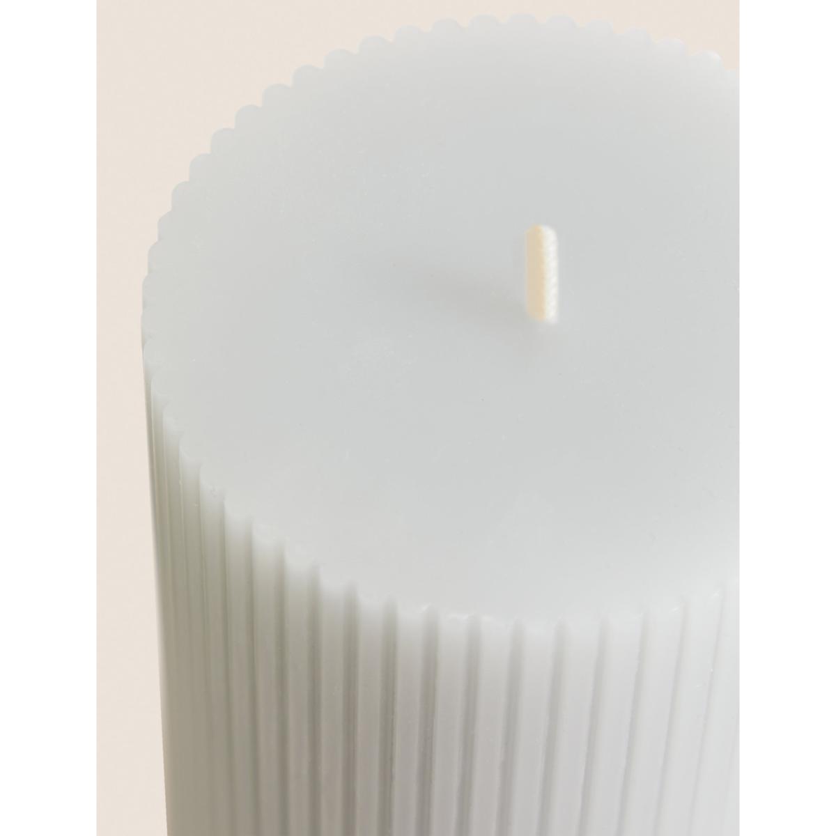 This decorative pillar candle has a finely ridged texture for a refined look and has a burn time of up to 65 hours. Choose from a selection of soft, calming colours.