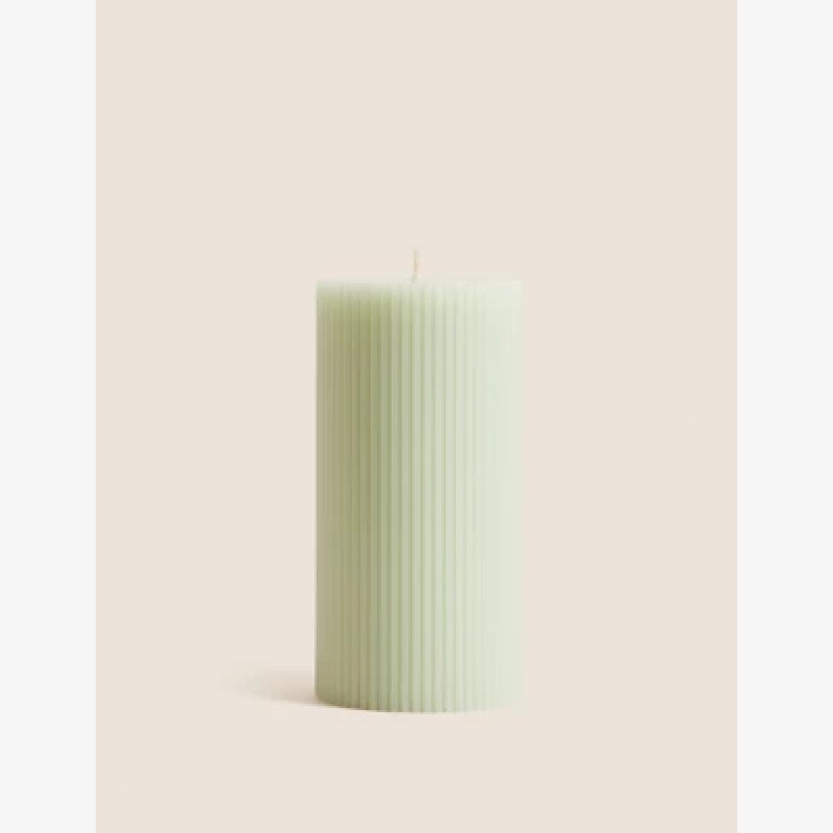 M&S Ridged Pillar Candle - Sage Green, Sage Green,Grey,Soft Pink,White