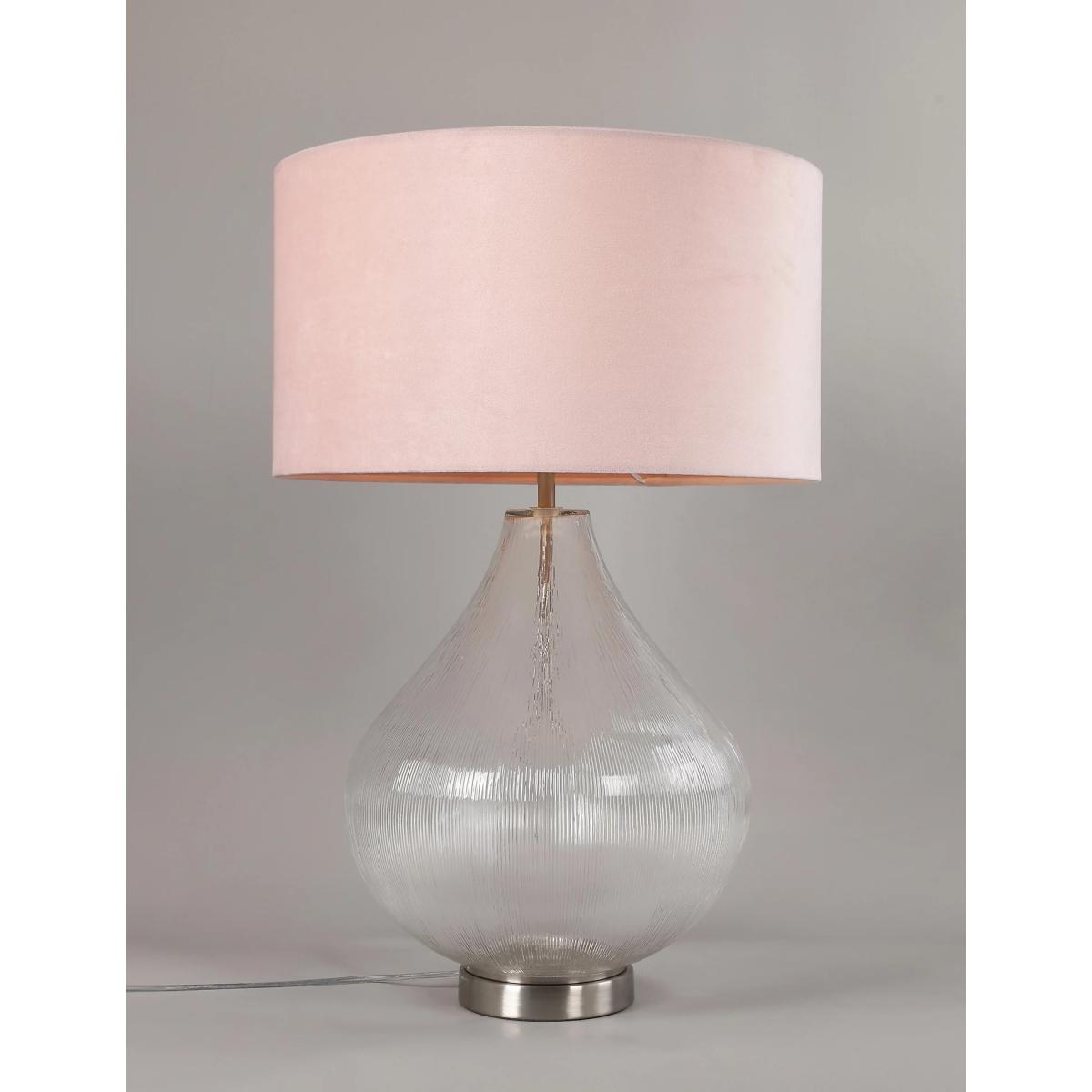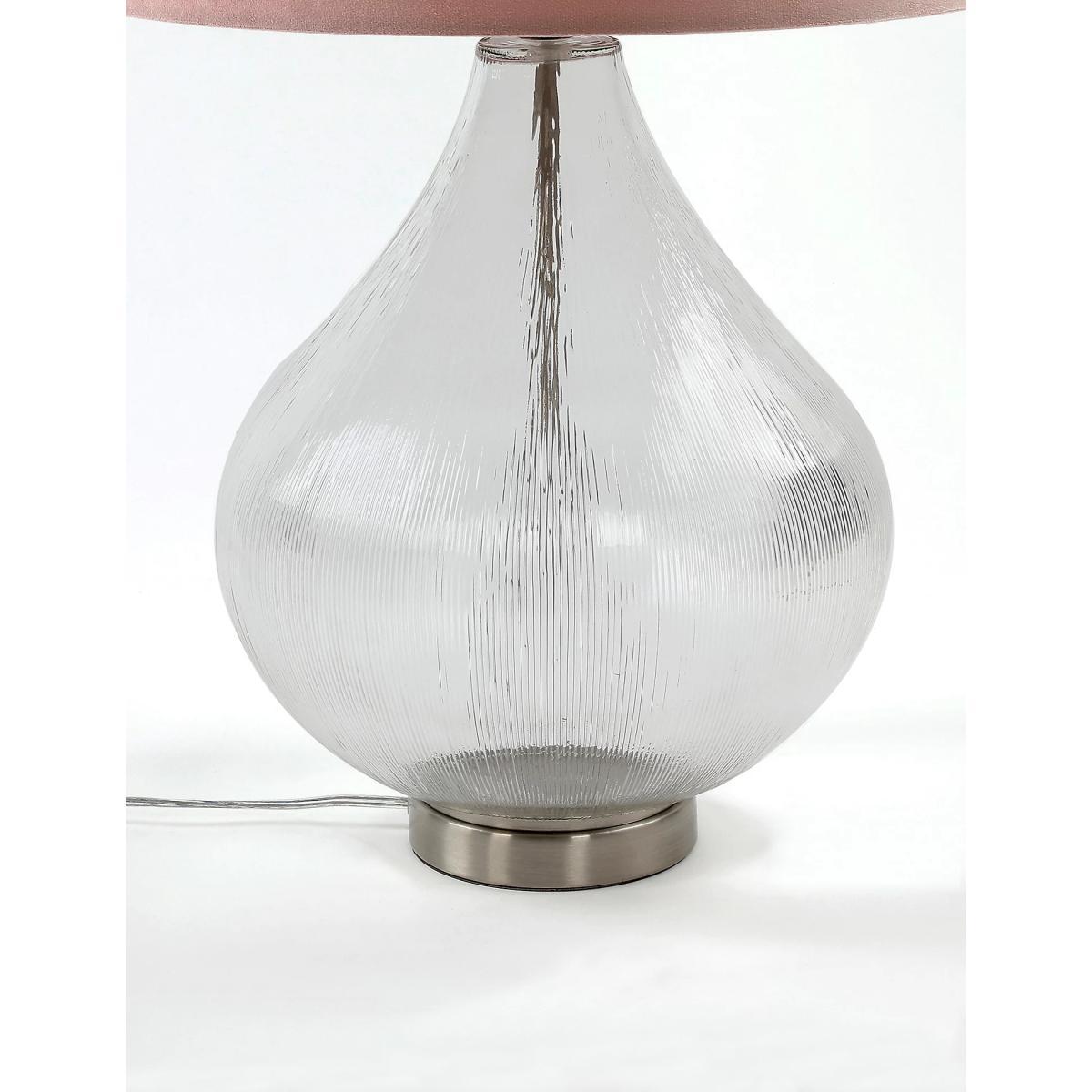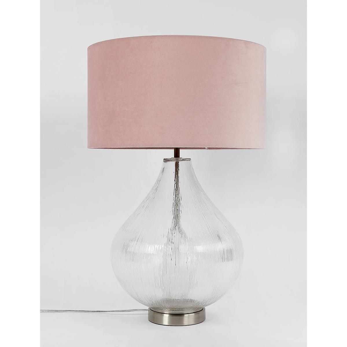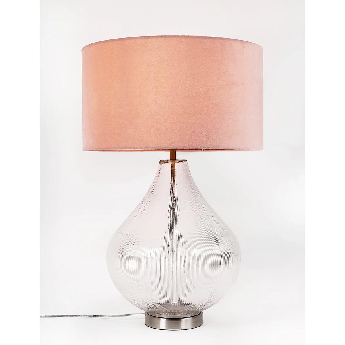 With a teardrop-shaped base and opulent lampshade, this table lamp is ideal for making a statement in your home. The oversized glass base has a delicate rippled texture and the shade is made from beautifully plush velvet.