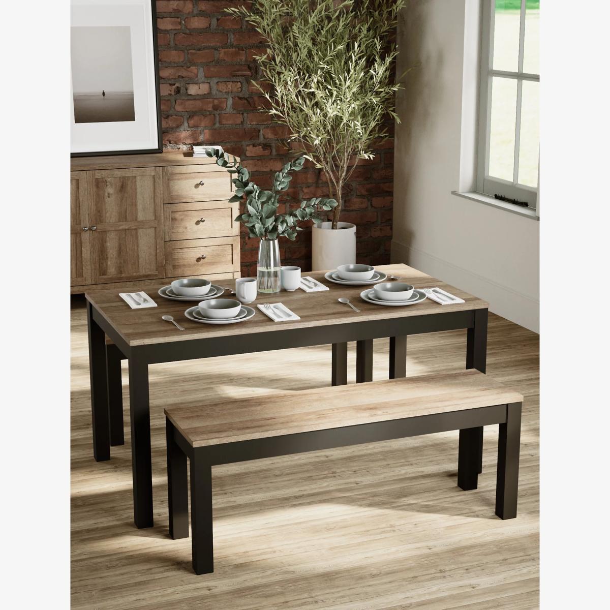Create a space perfect for socialising with this dining table and benches set from our Salcombe range. This modern set is made from responsibly sourced wood and features contrast legs for an eye-catching finish. Choose from a range of colours to fit with your space. Seats up to six people. We’re so confident our furniture is built to last, our industry-leading guarantee covers any manufacturing failure on all furniture. That’s our promise, and why our furniture comes with a 10-year guarantee that you can trust. Excludes: outdoor furniture and any issues that are a result of normal wear and tear, improper care or accidental damage.