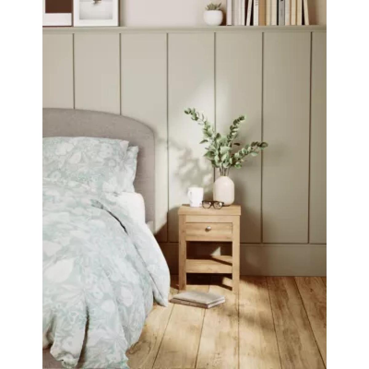 I love this M&S Salcombe slim bedside table for its simple, clean lines and natural finish, which lend themselves well to a variety of interiors. It’s ideal for creating a calm, understated bedroom aesthetic, especially in Scandi or cottage-style schemes where light wood tones add warmth without overpowering the space. The slim profile makes it a practical choice in smaller bedrooms, providing essential surface space without crowding the bedside. For styling, consider layering with a small lamp, some personal touches like a plant or a book, and keeping surfaces clutter-free for a fresh look. It works particularly well with soft neutral palettes but can also serve as a subtle contrast in more colourful or patterned schemes.