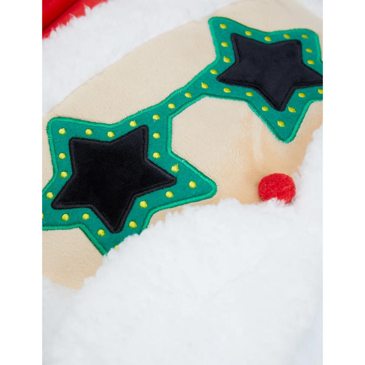 Add some Christmas cheer to your sofa with this jolly Santa face cushion. He sports a snazzy pair of embroidered star sunglasses as well as a textured hat and beard. A pom pom nose detail brings an extra cheerful finish.