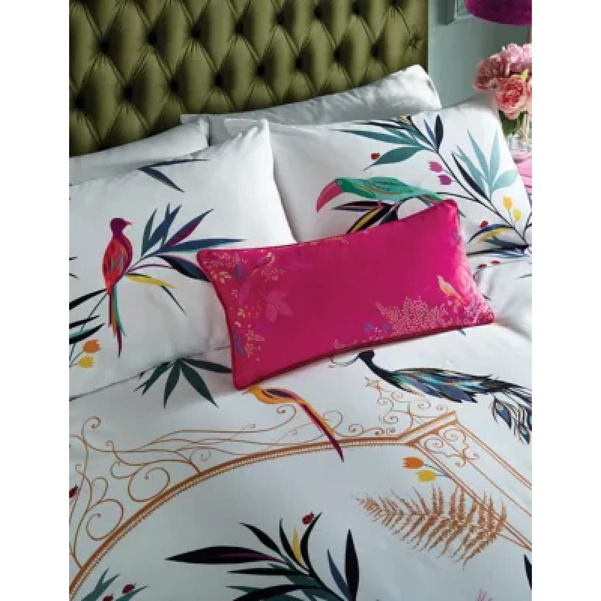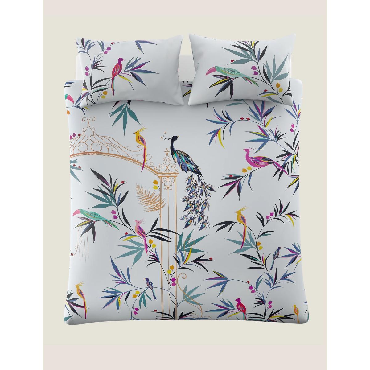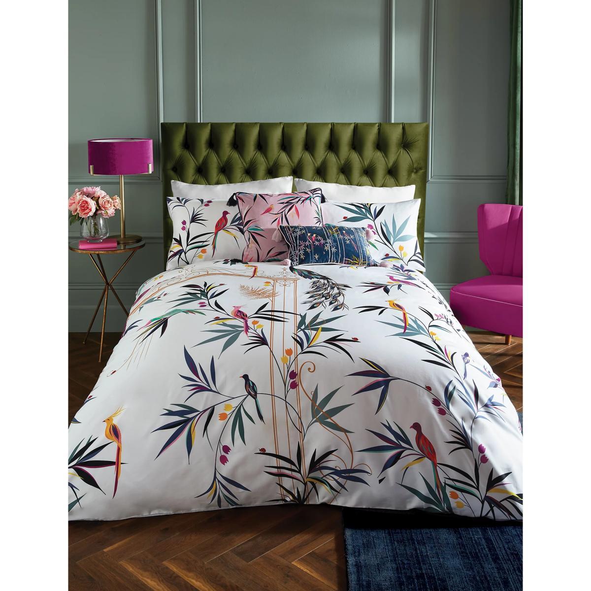 Make a statement in your bedroom with this printed Sara Miller London bedding set. It’s made from pure cotton with a sateen finish and 220 thread count to help keep you cool and comfortable throughout the night. The bedding is adorned with a striking print of tropical birds set on a backdrop of foliage and an enchanted gate.