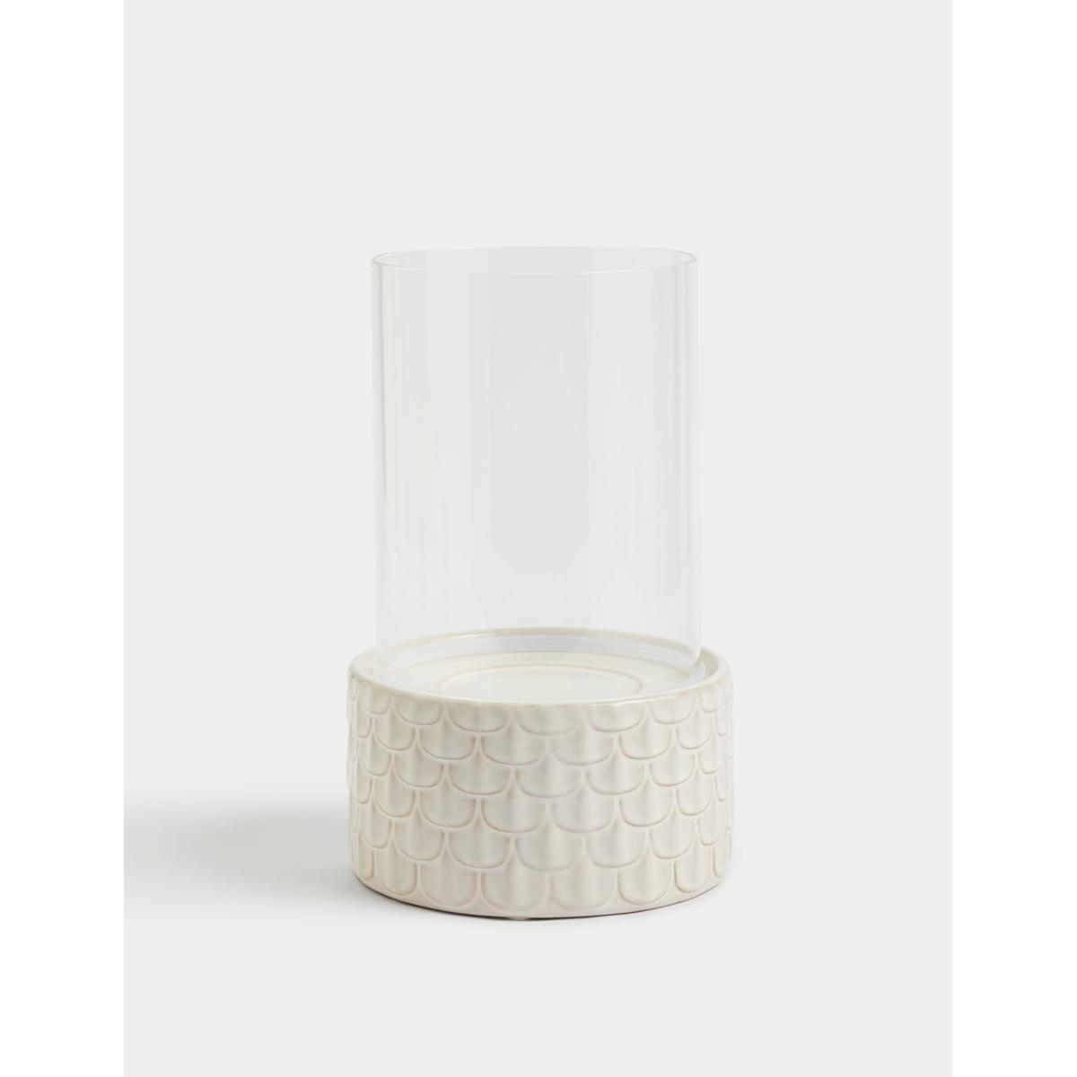 M&S Scallop Ceramic Hurricane Candle Holder - White, White