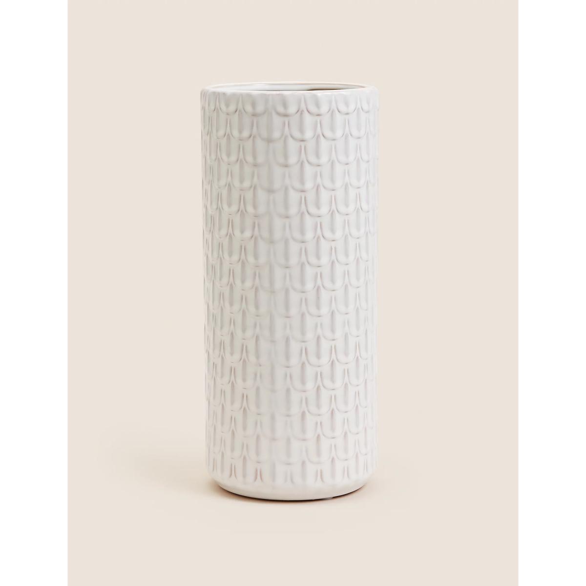Display your favourite blooms to perfection in this stylish cylinder vase. A scalloped pattern brings a subtly textured look to the glazed ceramic surface.