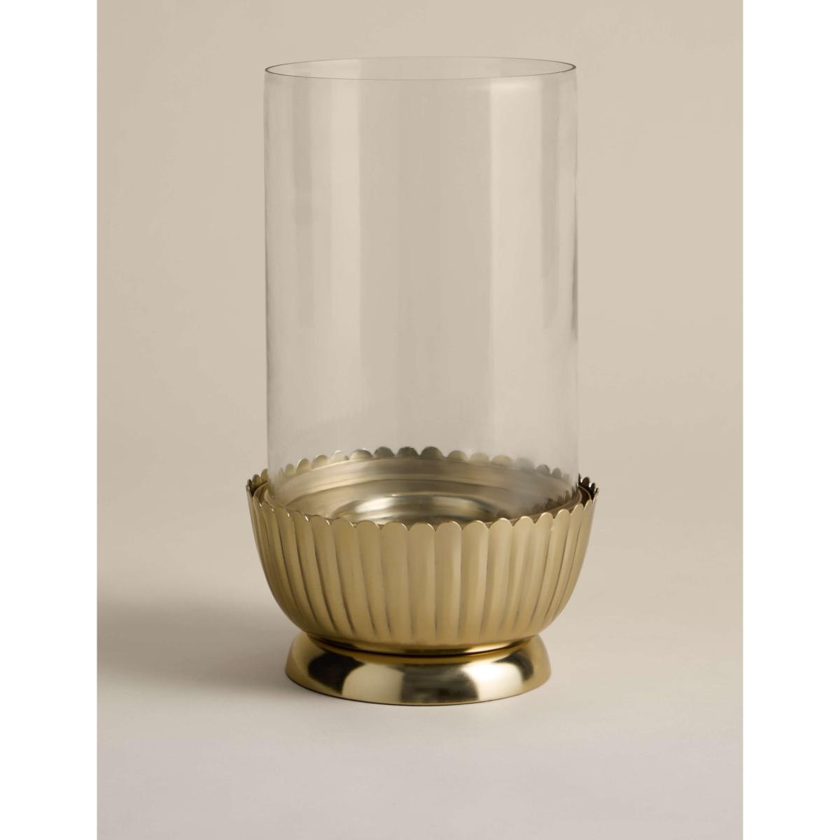 M&S Scallop Metal Hurricane Candle Holder Gold