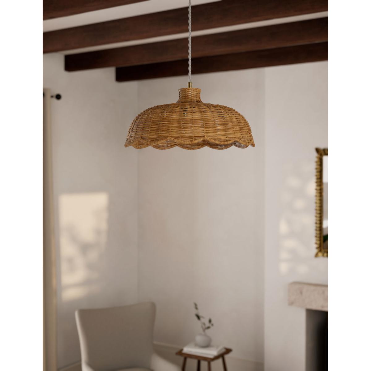 I love the M&S scallop rattan shade for its warm, natural texture that adds instant visual interest to any room. It's particularly effective in cosy living areas, dining rooms, or even bedrooms where you want to create a welcoming, relaxed atmosphere. The brown tones make it versatile and easy to incorporate into both modern and rustic interiors. Practical styling tips include pairing it with other natural materials like wood or linen, and using dimmable bulbs to adjust the mood. Hanging it at a height that provides ample illumination without overwhelming the space will help it serve as both a statement piece and a functional light source.
