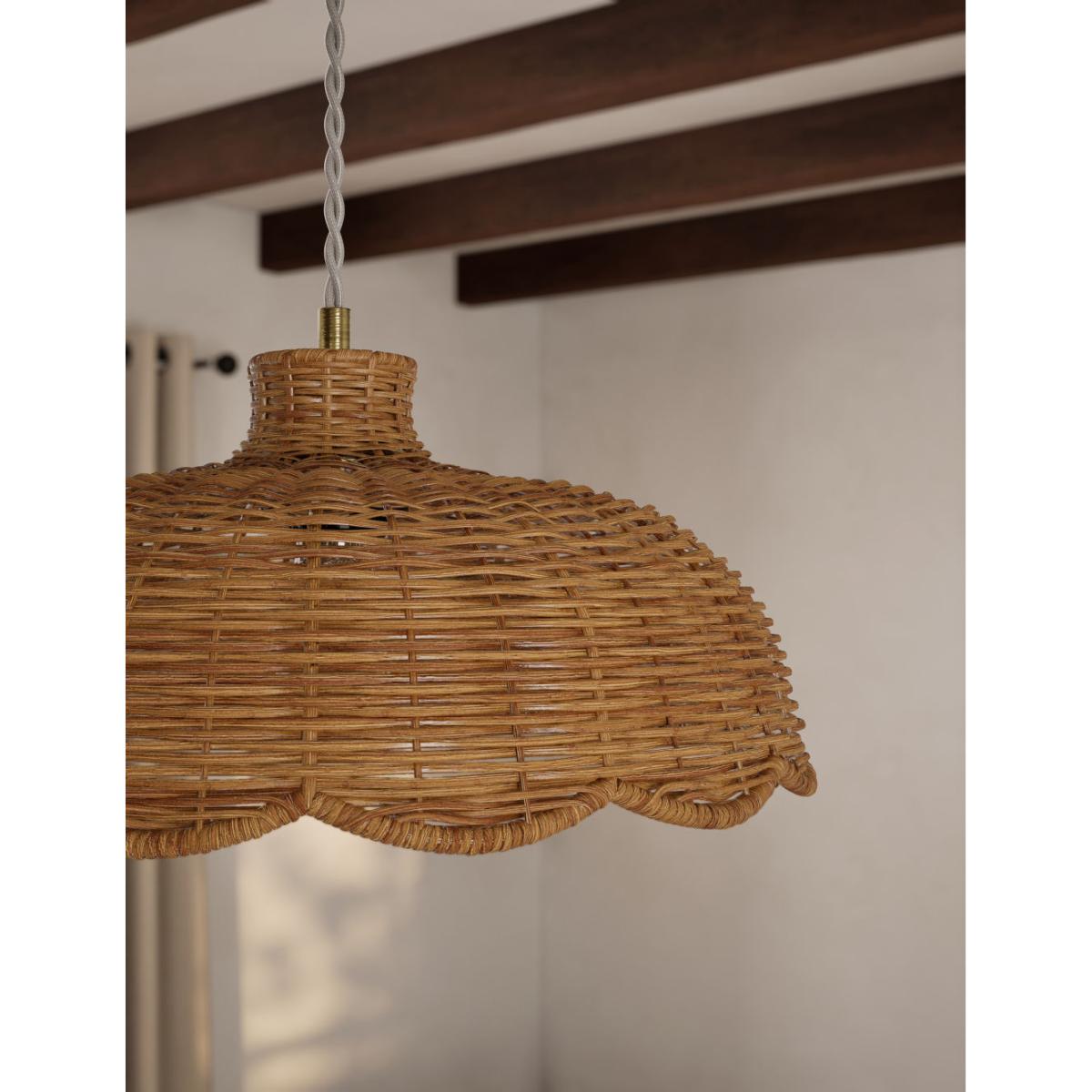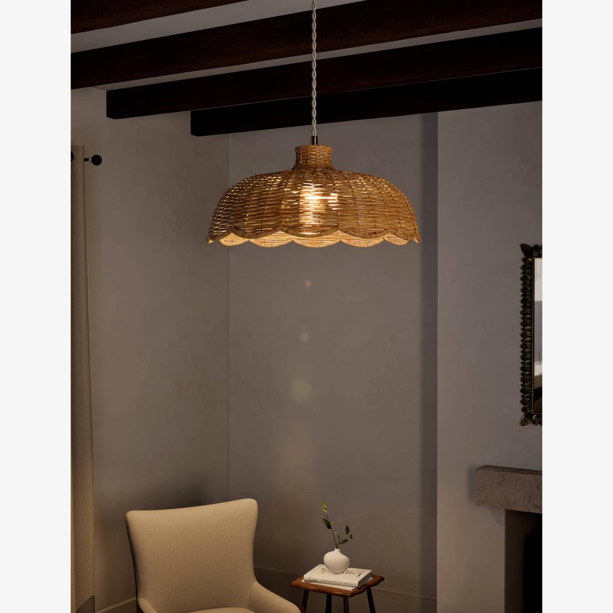Bring a boho touch to your décor with this textured lampshade. It's woven from natural rattan with a petal-like scalloped edge for a dainty look. Pair it with a lighting kit from our range to bring you room to life.