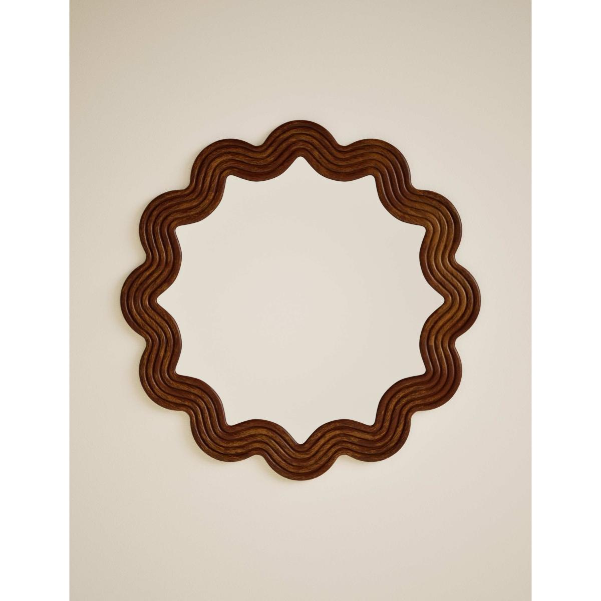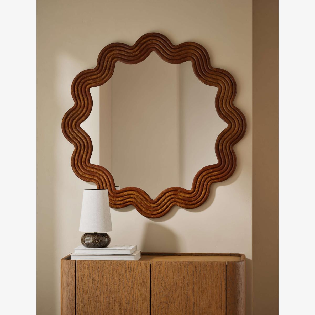 Add a unique touch to your home with this wooden wall mirror. Its undulating, scalloped frame is carved with a ribbed texture that enhances the organic design. The beautiful wood ensures a natural look and feel.