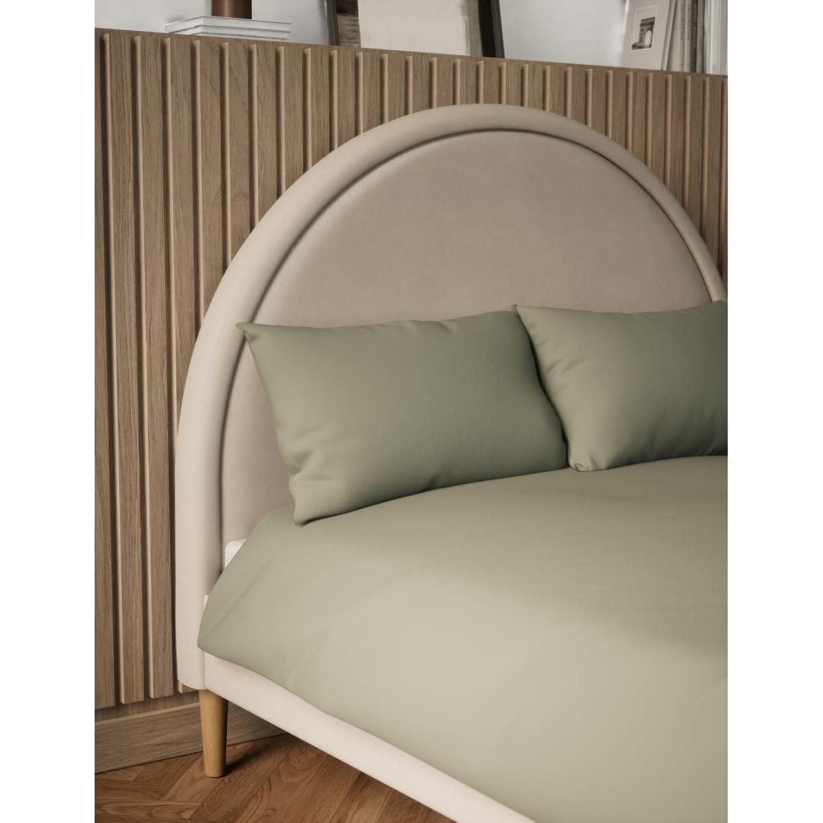 Bring a vintage-inspired feel to your room with our stylish Semi Circle bed. This striking design has a curved headboard with a neat border, and is finished in smooth fabric. Tall wooden feet raise this frame off the floor for a smart look, plus there's plenty of space for storage underneath. This style has classic horizontal wooden slats in the base to support your chosen mattress. We’re so confident our furniture is built to last, our industry-leading guarantee covers any manufacturing failure on all furniture. That’s our promise, and why our furniture comes with a 10-year guarantee that you can trust. Excludes: outdoor furniture and any issues that are a result of normal wear and tear, improper care or accidental damage.