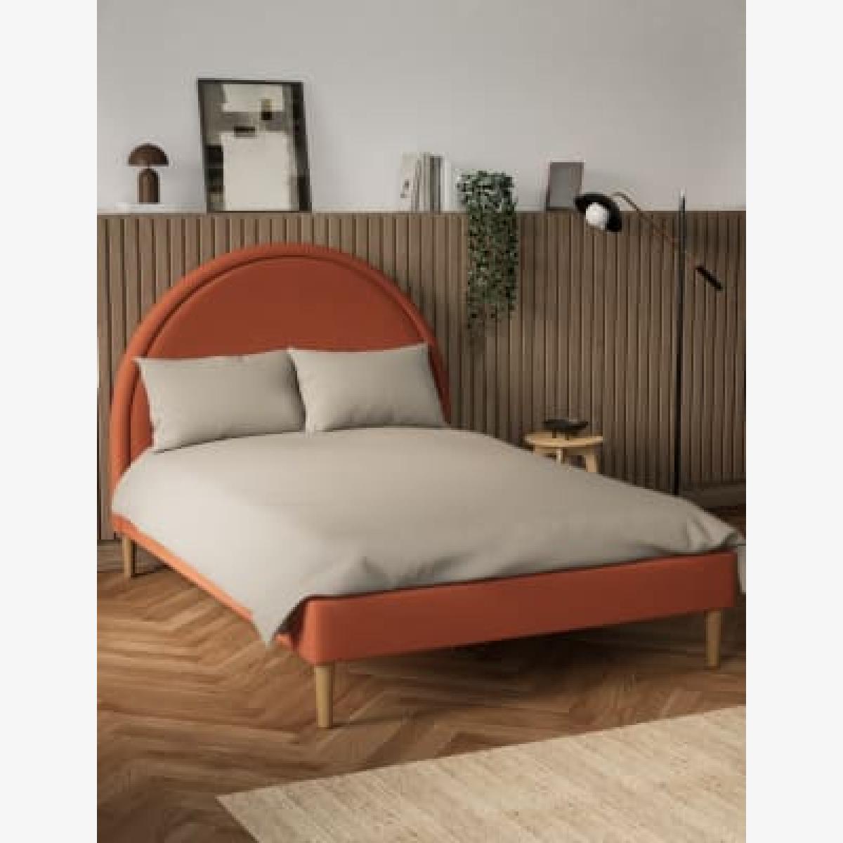 Bring a vintage-inspired feel to your room with our stylish Semi Circle bed. This striking design has a curved headboard with a neat border, and is finished in smooth fabric. Tall wooden feet raise this frame off the floor for a smart look, plus there's plenty of space for storage underneath. This style has classic horizontal wooden slats in the base to support your chosen mattress. We’re so confident our furniture is built to last, our industry-leading guarantee covers any manufacturing failure on all furniture. That’s our promise, and why our furniture comes with a 10-year guarantee that you can trust. Excludes: outdoor furniture and any issues that are a result of normal wear and tear, improper care or accidental damage.