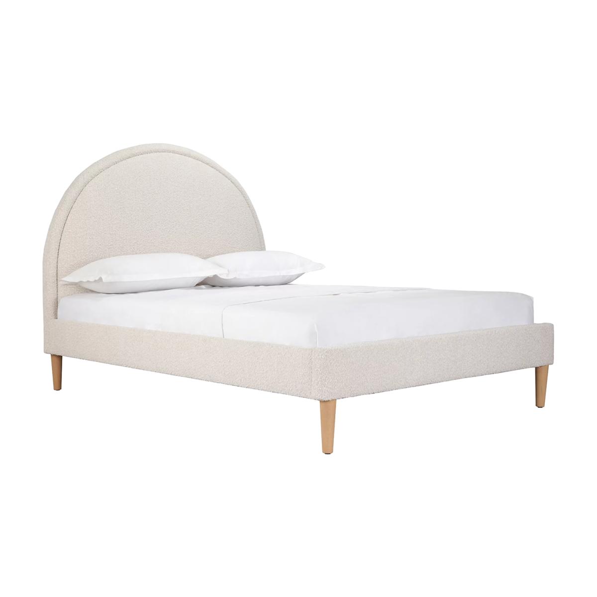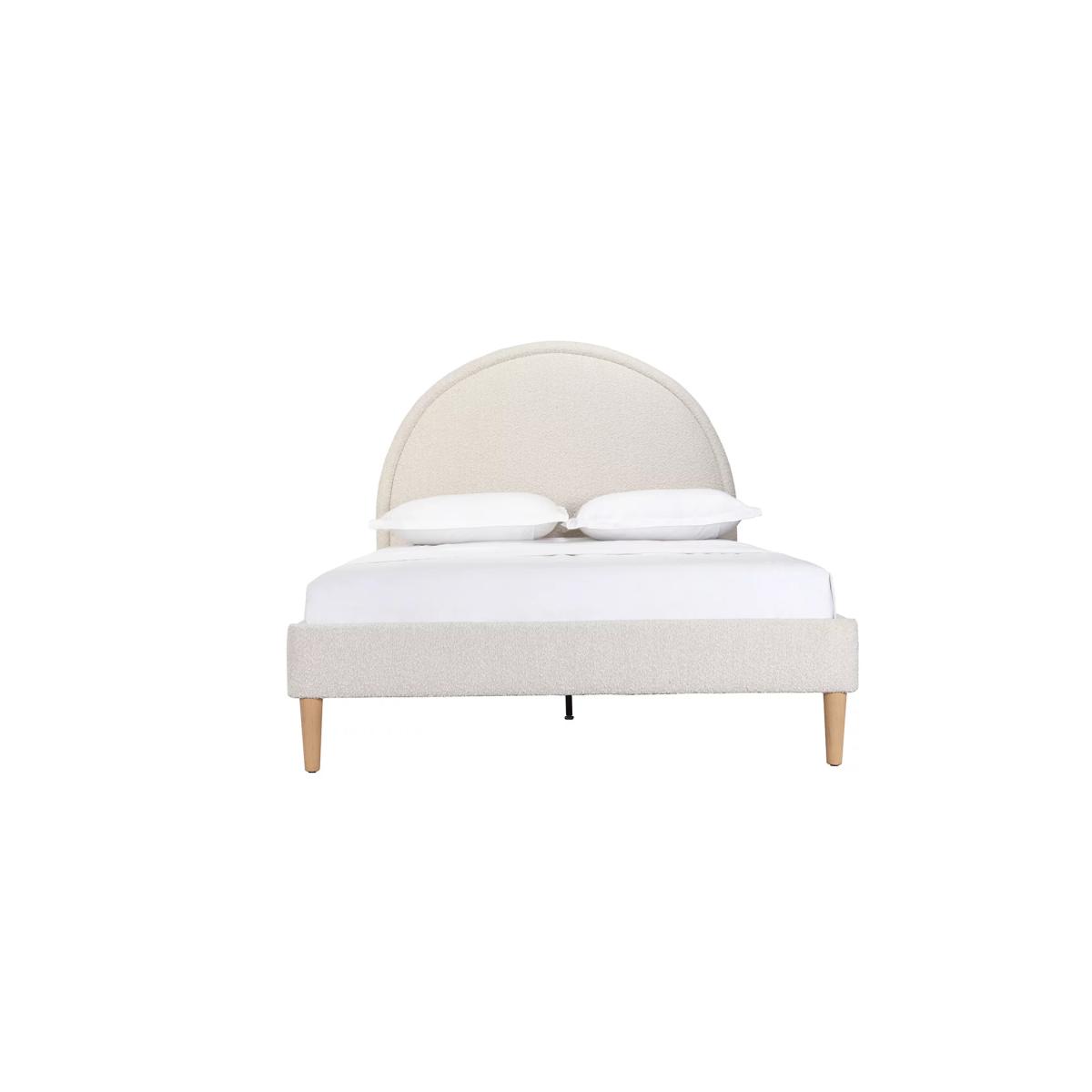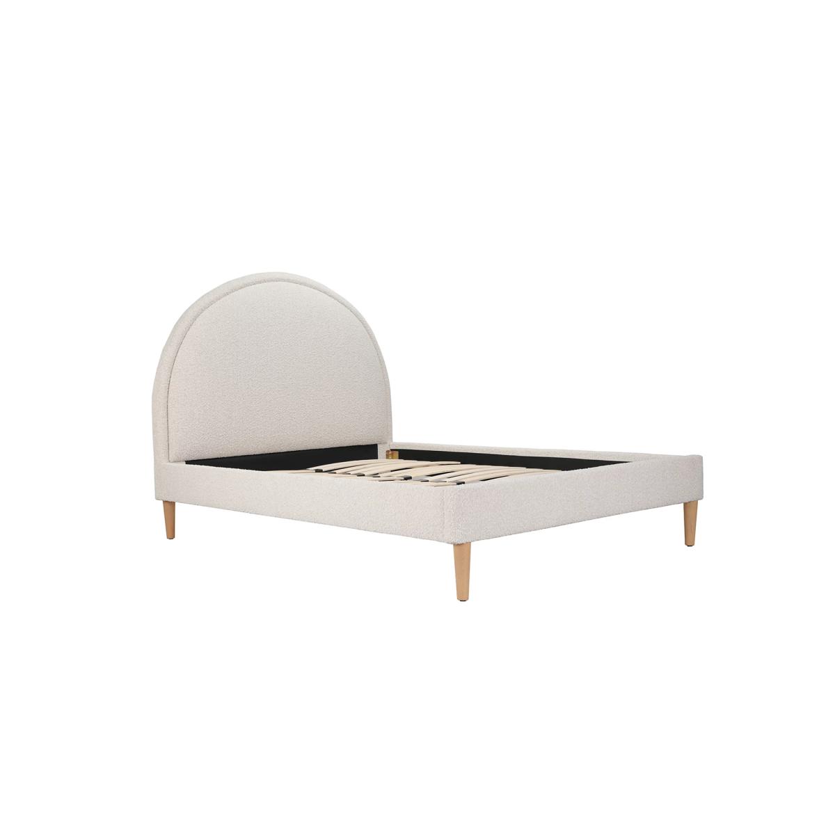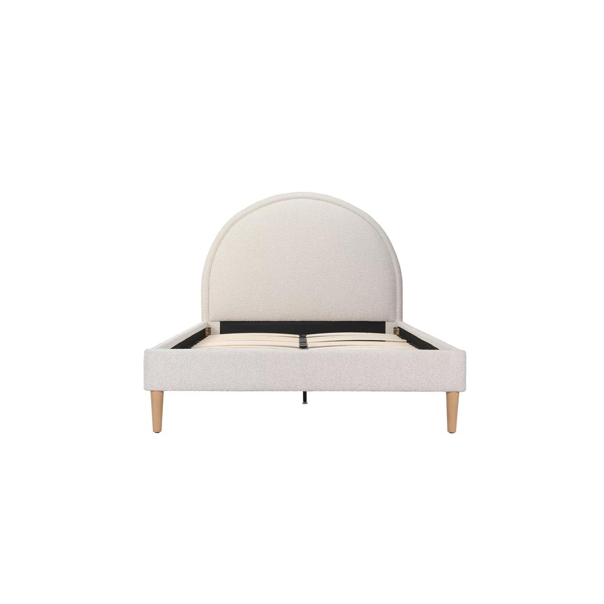Bring a vintage-inspired feel to your room with our stylish Semi Circle bed. This striking design has a curved headboard with a neat border, and is finished in a boucle fabric. Tall wooden feet raise this frame off the floor for a smart look, plus there's plenty of space for storage underneath. This style has classic horizontal wooden slats in the base to support your chosen mattress. We’re so confident our furniture is built to last, our industry-leading guarantee covers any manufacturing failure on all furniture. That’s our promise, and why our furniture comes with a 10-year guarantee that you can trust. Excludes: outdoor furniture and any issues that are a result of normal wear and tear, improper care or accidental damage.