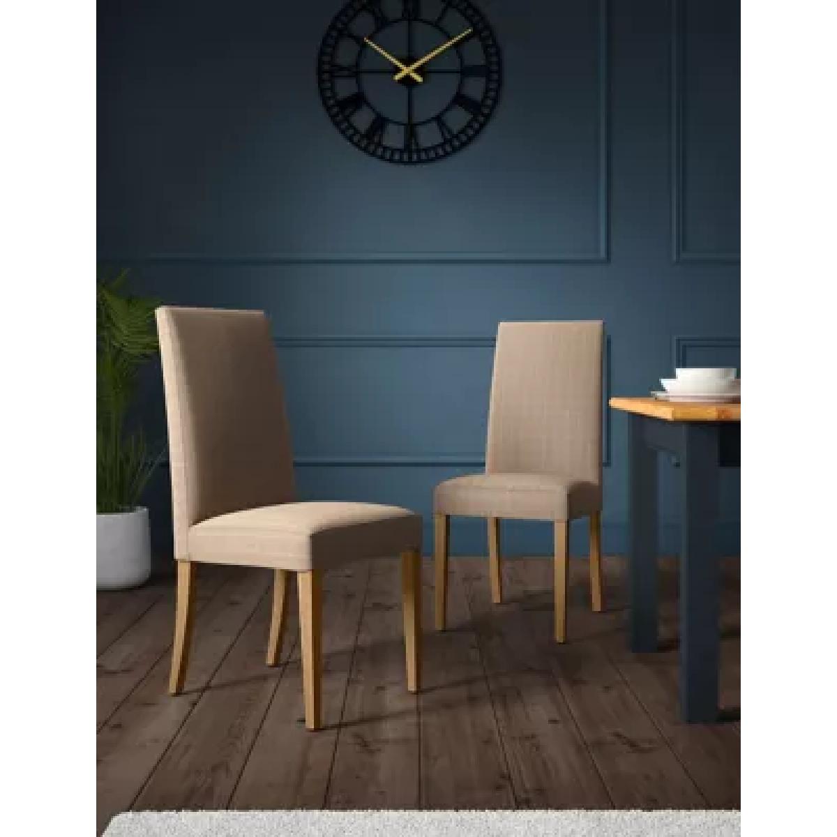 M&S Set of 2 Alton Checked Dining Chairs - Natural, Natural