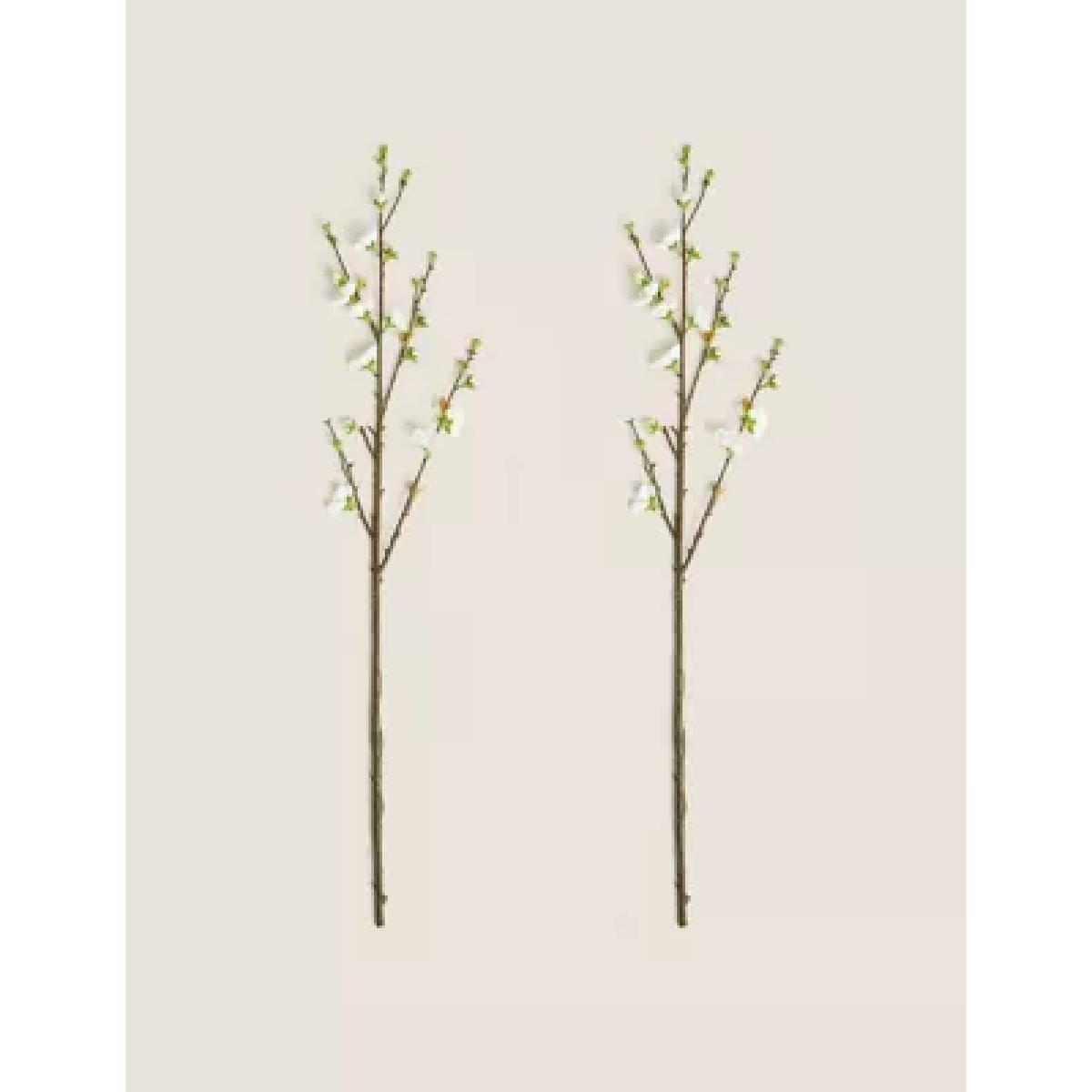 M&S Set of 2 Artificial Blossom Single Stems - White, White