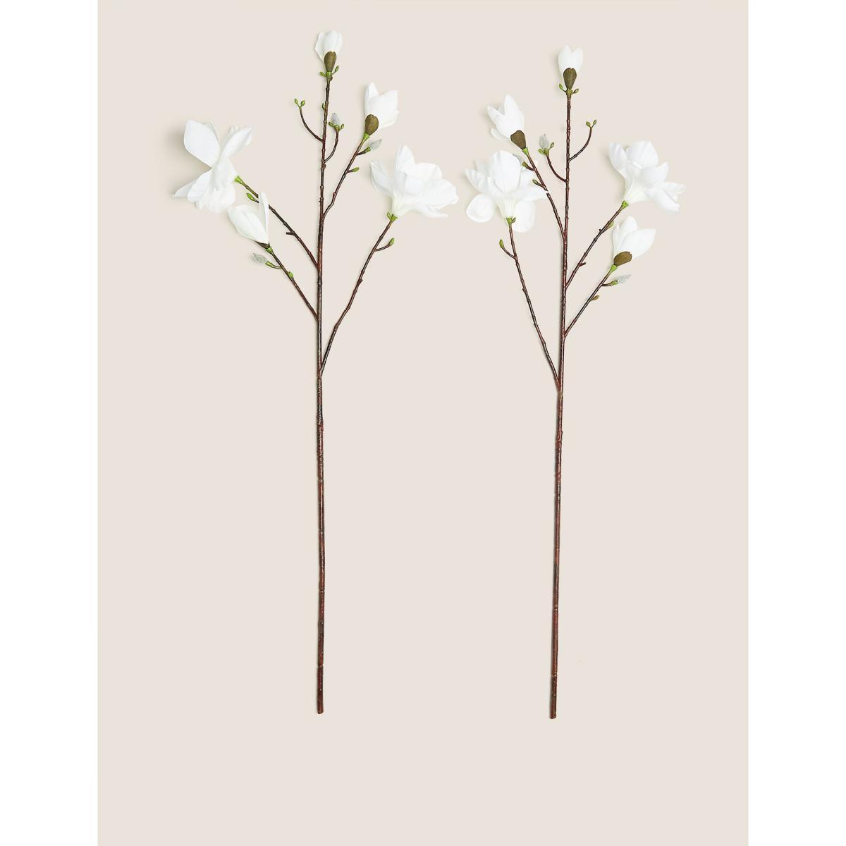 M&S Set of 2 Artificial Magnolias Single Stem - White Mix, White Mix