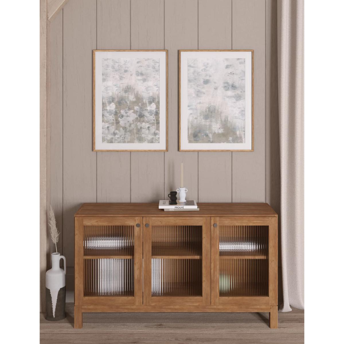 I really like this set of two framed art pieces - the blurred floral design in grey makes them versatile and easy to incorporate into various interiors. They work particularly well in minimalist, monochrome, or Scandinavian-style spaces where their subtlety adds texture without overpowering. Practical styling tips include pairing them with simple, neutral furniture or placing them above a bed or sofa to create a calming focal point. These artworks can also be layered with other pieces or combined with textured accessories like soft throws or woven baskets to add depth. The clean wooden frame lends a touch of warmth and can tie in nicely with natural materials throughout your room.