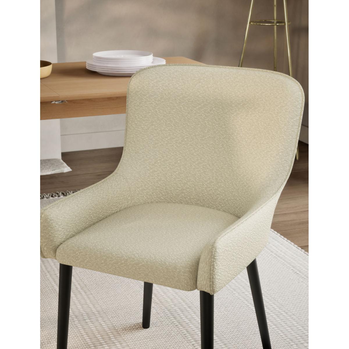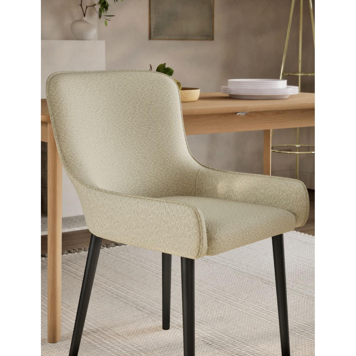 Introduce subtle sophistication to your dining area with this set of two Braxton dining chairs. Upholstered in textured boucle fabric, these pieces add a touch of warmth and tactile intrigue to your space. The low curved armrests and splayed painted legs create a distinctive silhouette. We’re so confident our furniture is built to last, our industry-leading guarantee covers any manufacturing failure on all furniture. That’s our promise, and why our furniture comes with a 10-year guarantee that you can trust. Excludes: outdoor furniture and any issues that are a result of normal wear and tear, improper care or accidental damage.