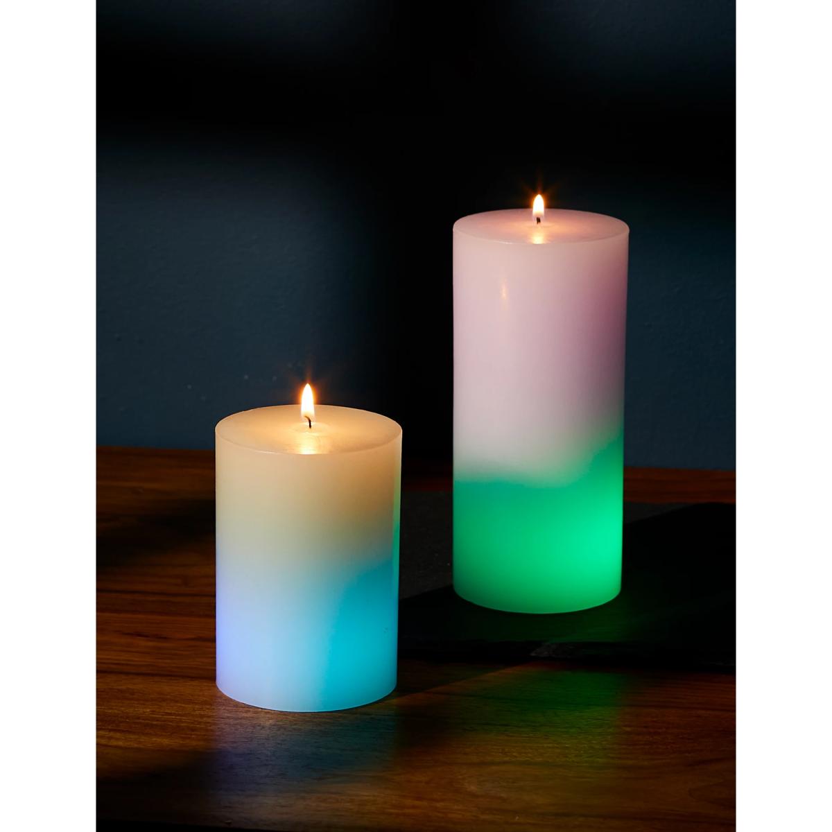 This set of two pillar candles is perfect for long summer evenings. The candles come in pretty pastel hues that change colour when lit.