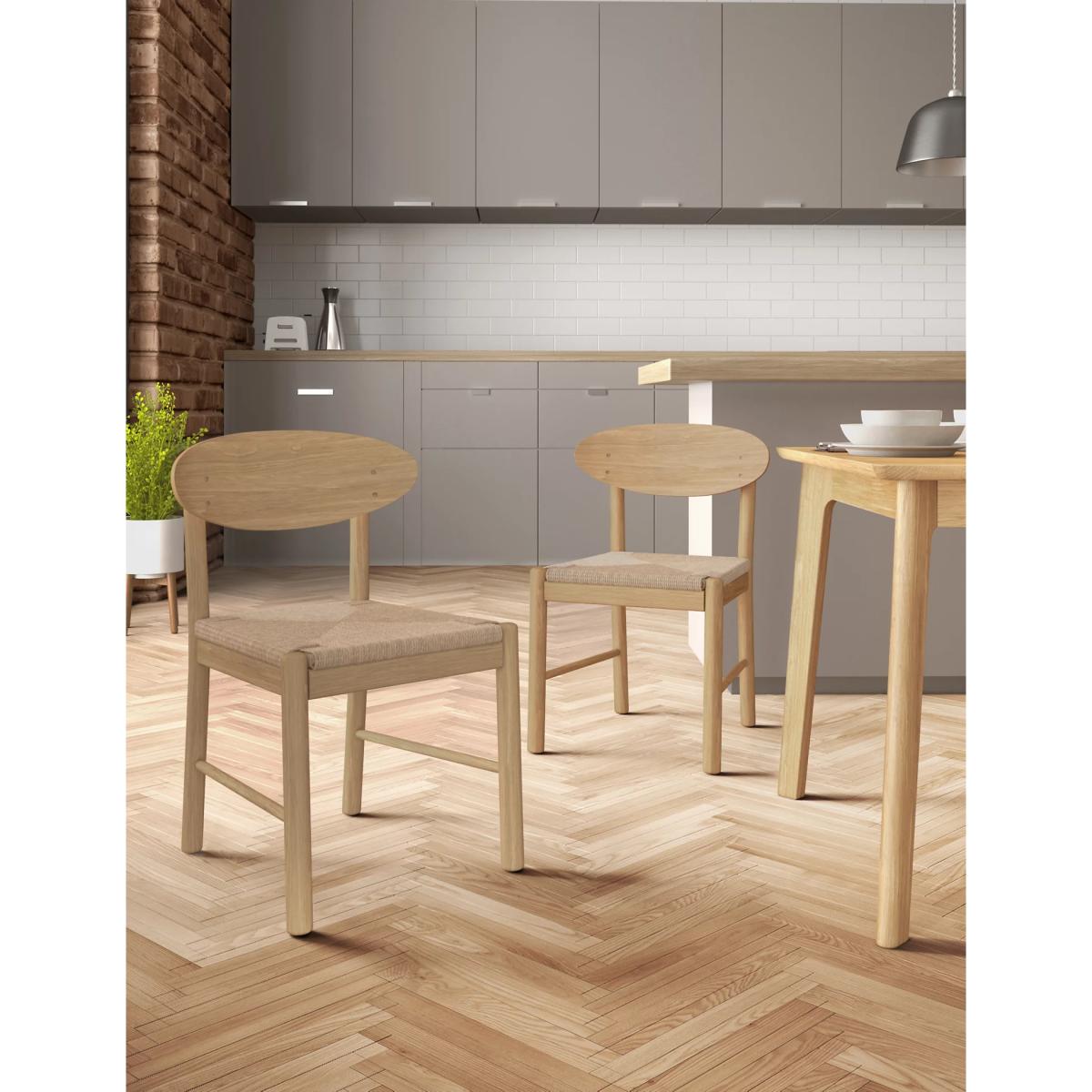 I love these as they bring a simple, organic touch to a range of dining spaces. Their oak frame adds warmth and natural texture, making them especially suited to Scandinavian-inspired interiors, modern minimalism, or rustic settings. They work well paired with both neutral and coloured tables, and their understated design means they won’t overpower a space. For styling tips, try mixing and matching with upholstered or patterned seats for added visual interest, or use them with a variety of table styles to create a relaxed, eclectic vibe. Their versatile look also makes them practical for everyday family meals or more contemporary dining setups.