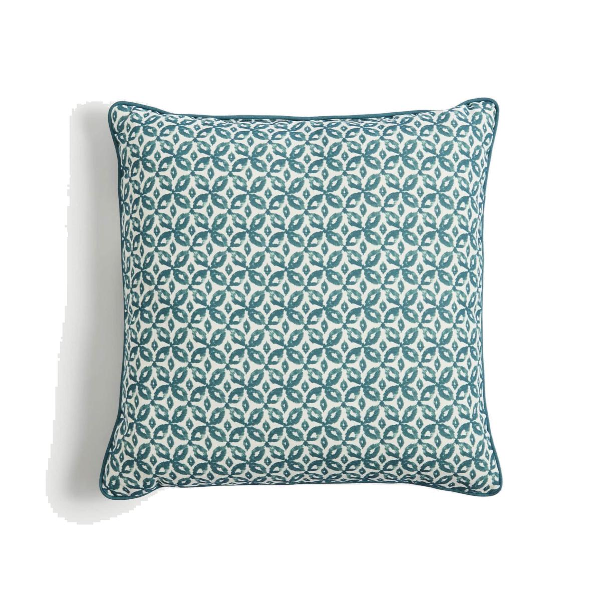 Crafted from water-resistant fabric to help them withstand sudden rain showers, these outdoor cushions are a practical choice. They're made in a timeless square shape with an intricate geometric print. Piped trims ensure a neat finish.