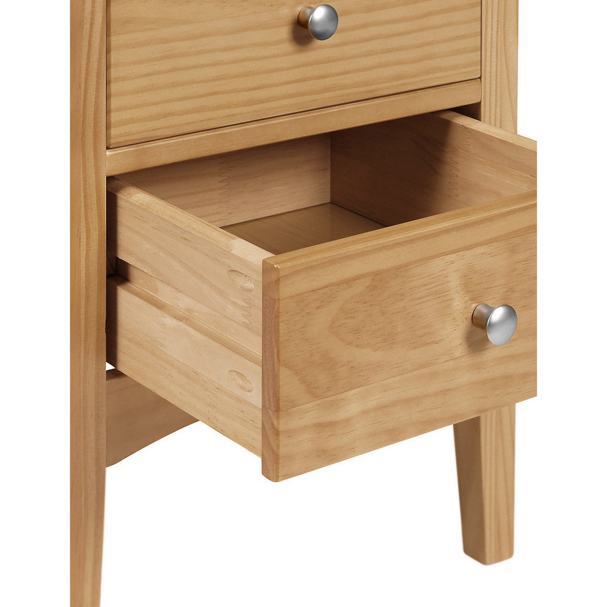To complete your bedroom ensemble, this matching set of bedside tables from the Hastings Collection will be sure to impress. Featuring a single drawer and shelf to keep all your bedtime essentials close by and designed to fit into smaller gaps, these bedside cabinets are the perfect space saving option. Crafted from predominantly solid pine collected from sustainable sources and finished with a light pine veneer, this set of matching bedside tables will add a touch of elegance to any bedroom. We're so confident our furniture is built to last, our industry-leading guarantee covers any manufacturing failure on all furniture. That's our promise, and why our furniture comes with a 10-year guarantee that you can trust. Excludes: outdoor furniture and any issues that are a result of normal wear and tear, improper care or accidental damage.