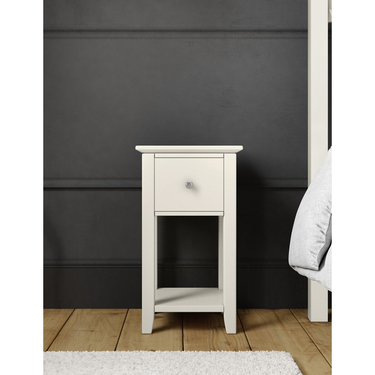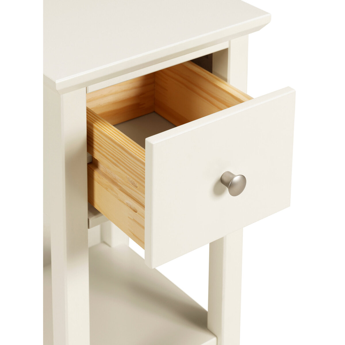 I really like this set of bedside tables because of their versatile size and classic design. They work well in both traditional and contemporary interiors, especially in cosy bedrooms where space is limited. The variety of colours-ivory, mid blue, and dark grey-offer easy coordination with different colour schemes, enabling you to add a pop of colour or keep things neutral. Practical styling tips include placing a small lamp or a favourite book on top, along with a decorative tray or a vase for visual interest. The small drawer is perfect for storing essentials out of sight, keeping surfaces clutter-free. Overall, these tables are a practical, stylish choice for creating a clean and functional bedside setup.