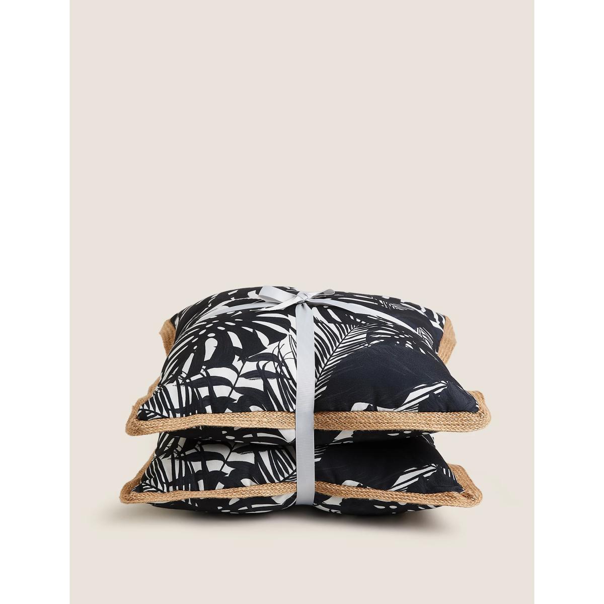 M&S Set of 2 Leaf Print Outdoor Cushions - Black Mix, Black Mix