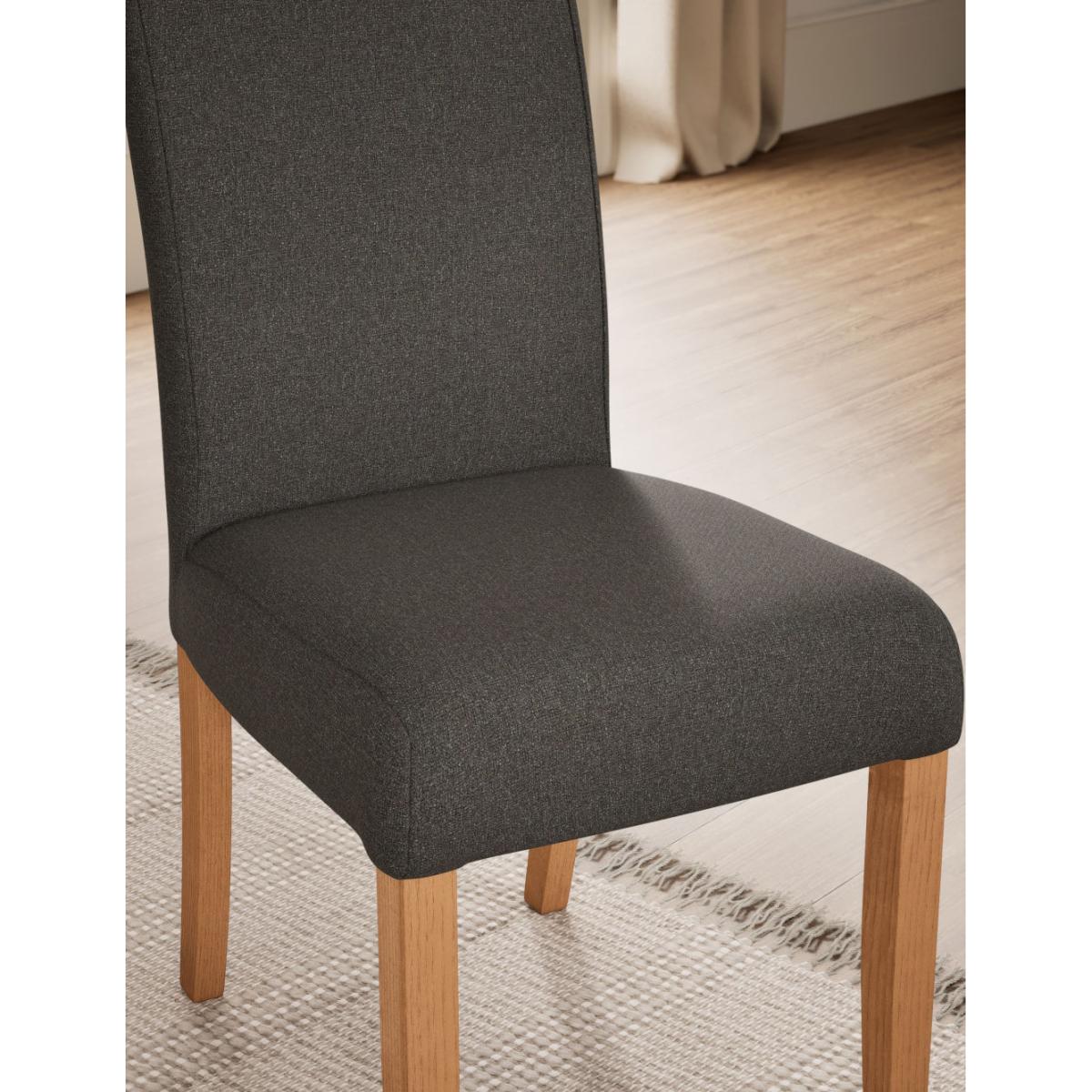 I love the Malton chairs for their deep charcoal upholstery and light-oak legs - they bring a clean, modern feel that suits Scandi, industrial or relaxed farmhouse schemes alike. The neutral grey works with pale or dark tables, and the slim profile keeps a dining space feeling open. For styling, tuck them neatly under a simple oak or white-washed table and layer a natural-fibre runner or rug beneath to add texture. Accent with linen cushions or a single contrasting throw over the back, then introduce black-metal candlesticks or a ceramic planter on the table to tie the look together.