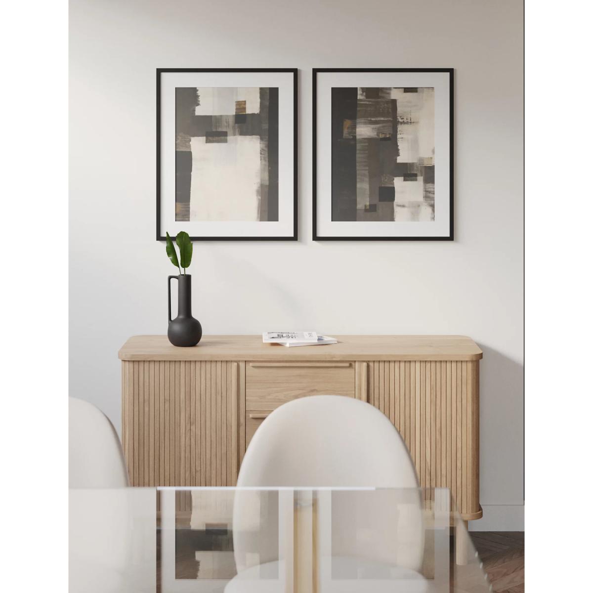 This modern wall art comes in a handy pack of two to help you achieve a stylish interior look with ease. Each monochrome print is encased in a rectangular wooden frame for an impactful look.